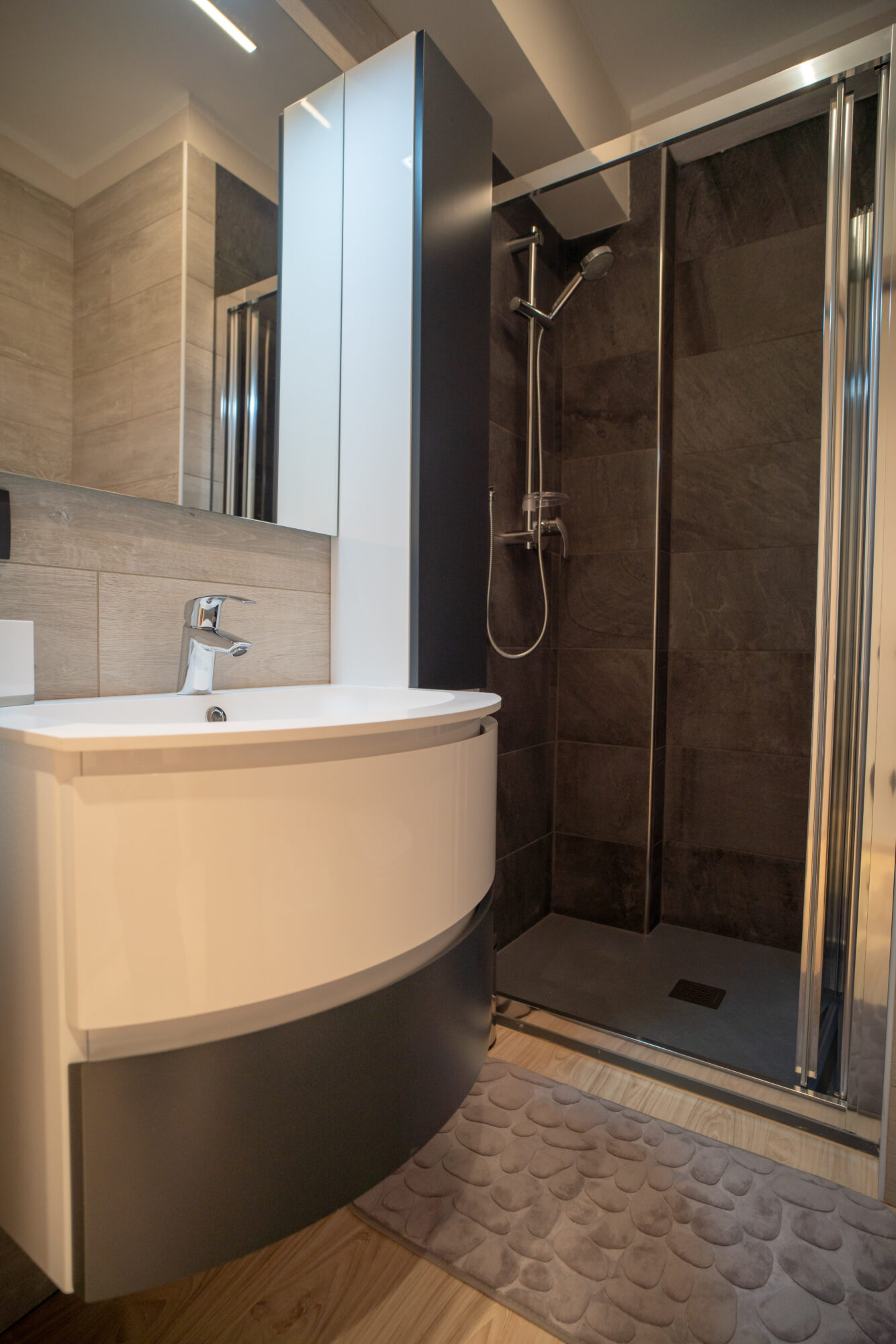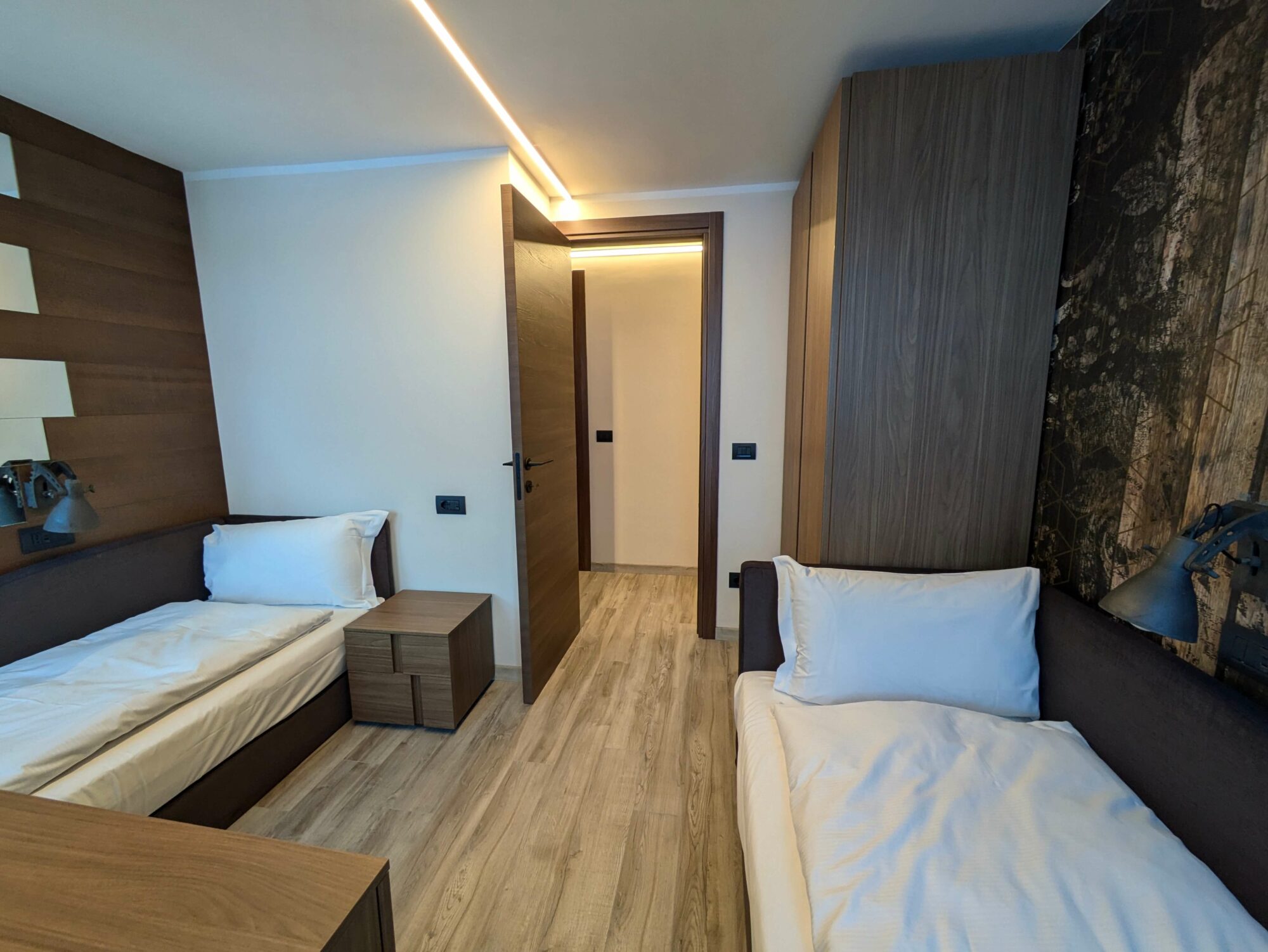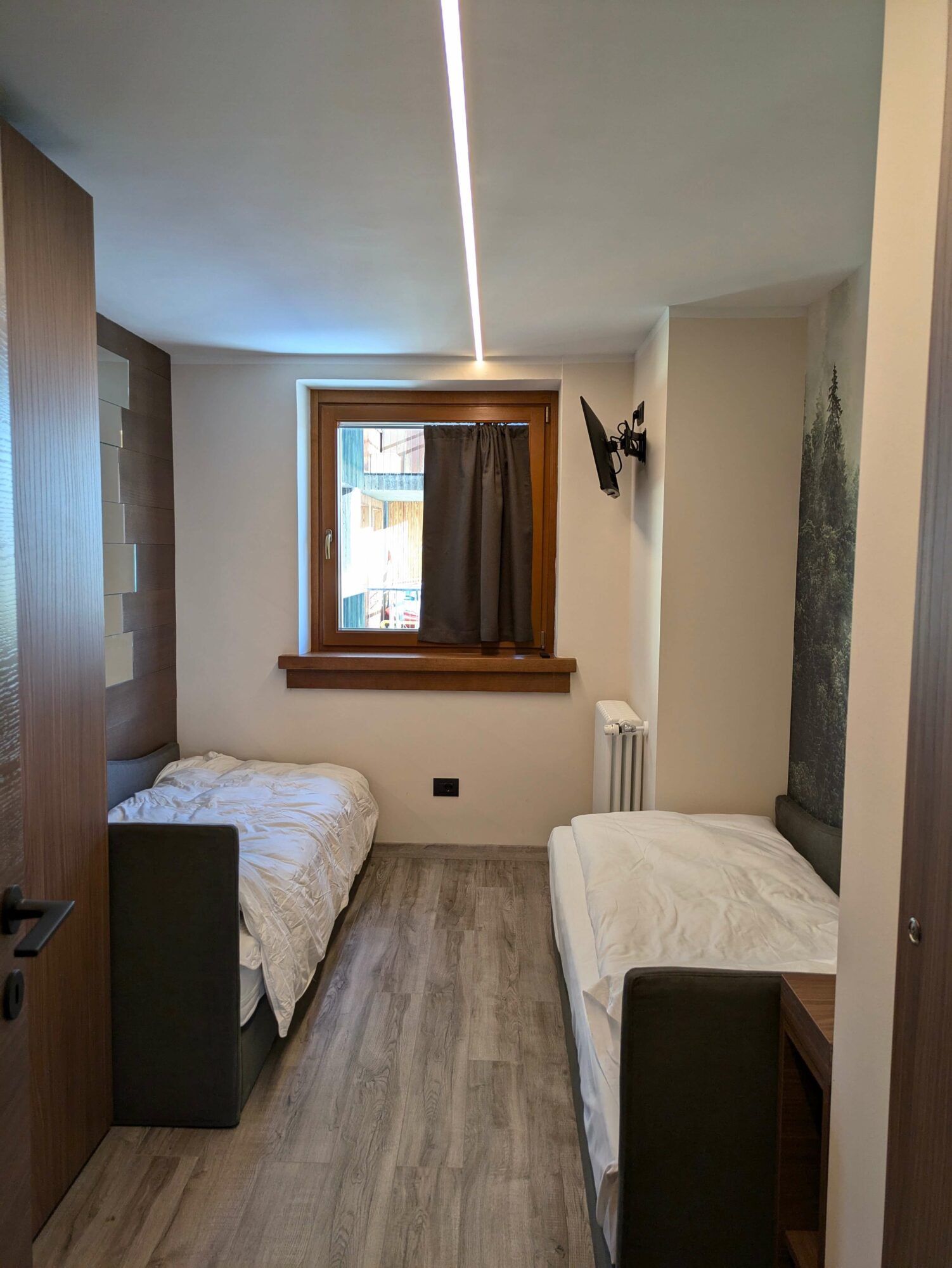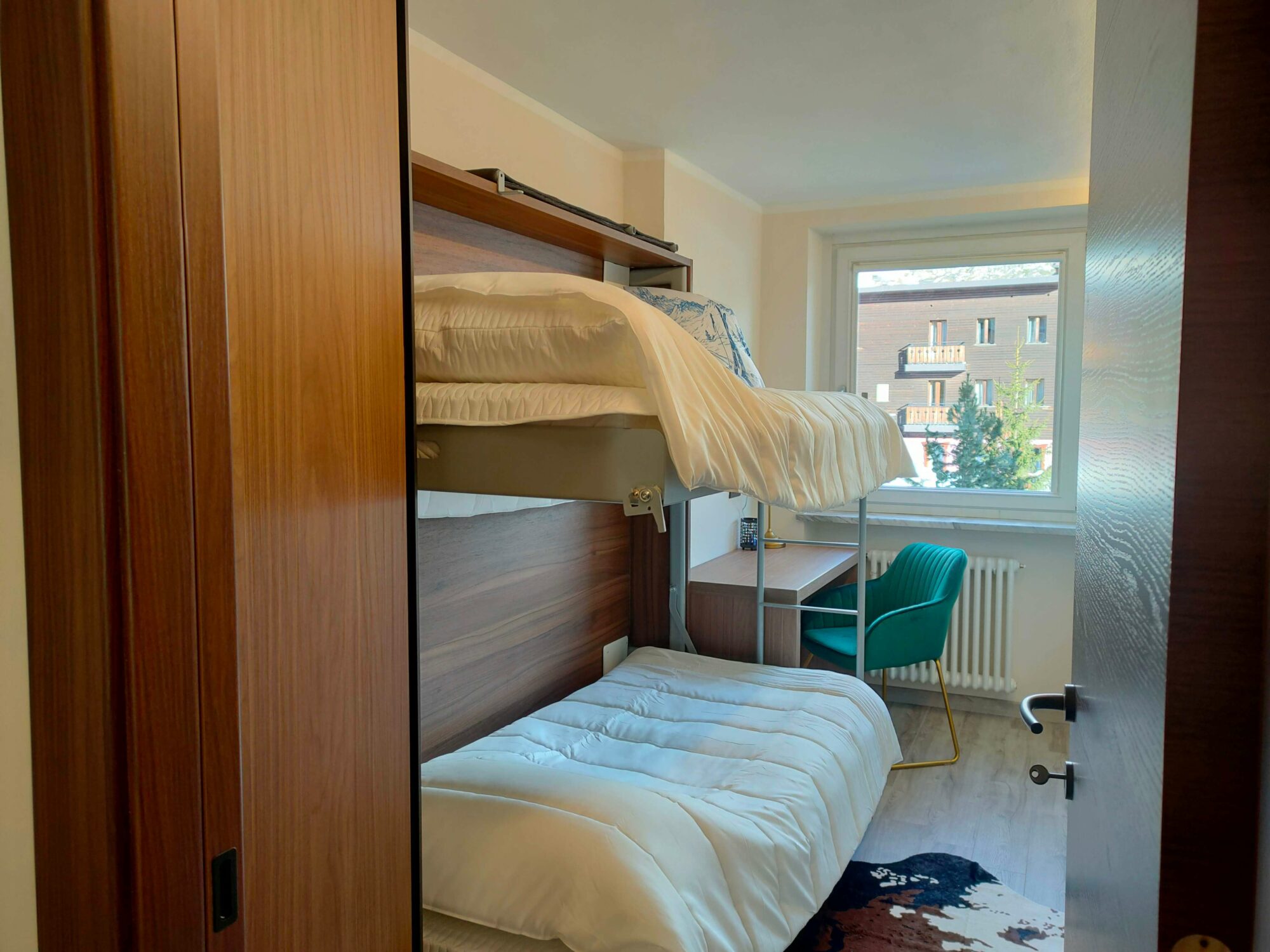 Der er to soveværelser: ét med dobbeltseng og eget badeværelse med badekar, og ét med to enkeltsenge (kan laves til dobbeltseng). Et ekstra badeværelse med bruser sikrer komfort til hele familien. Her bor du i fredelige omgivelser, men tæt på det hele – 100 meter fra lifterne og ca. 400 meter fra centrum med butikker og restauranter. Du kan næsten stå på ski hele vejen hjem via Ventina-pisten.