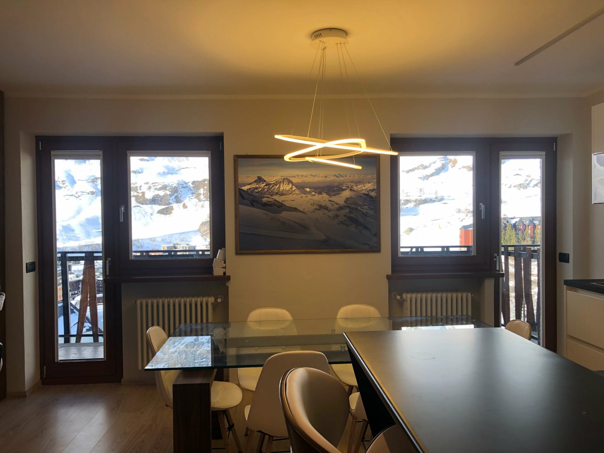Lejligheden ligger i centrum er Cervinia, der ønsker både byliv og nem adgang til pisterne.