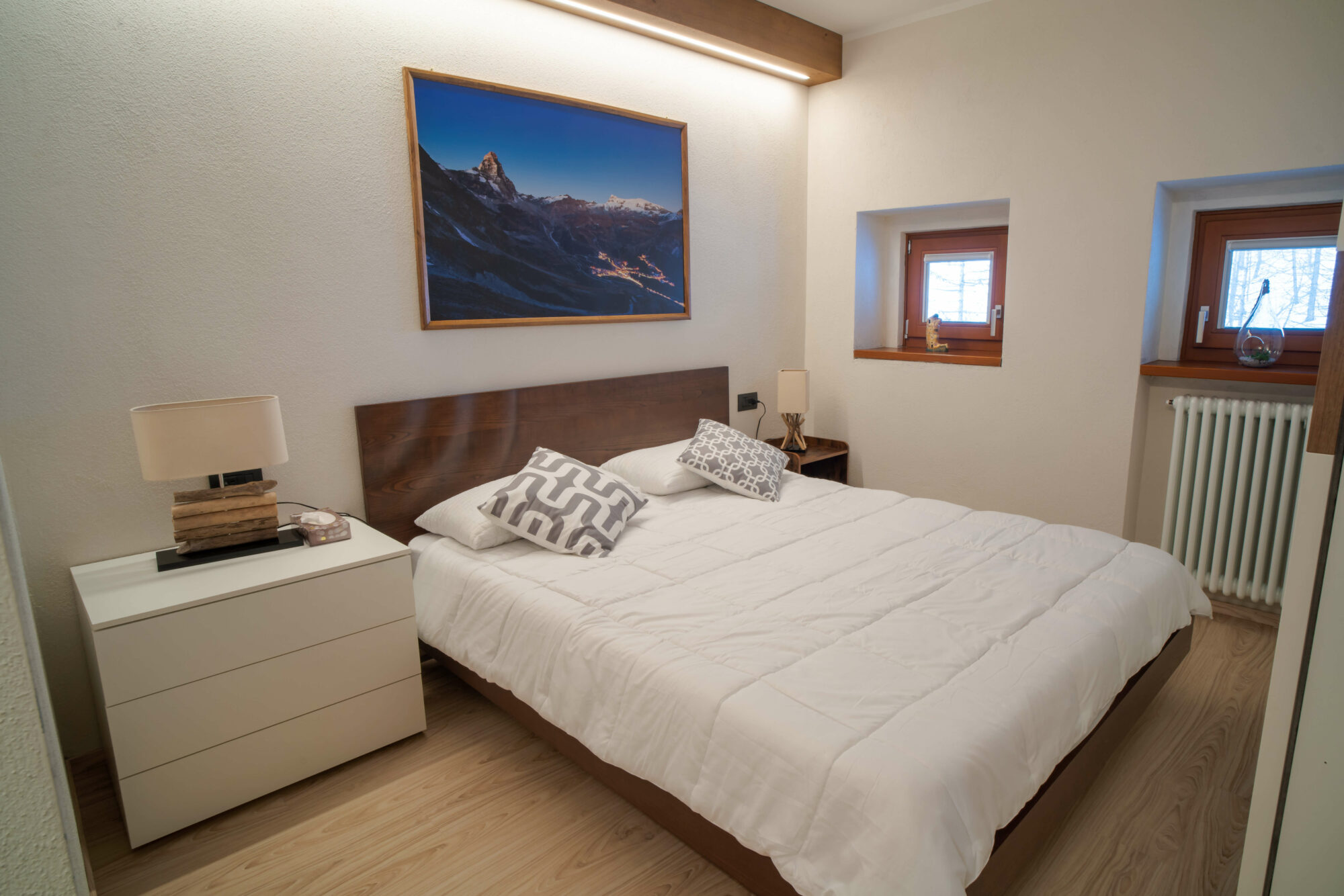 Denne renoverede lejlighed ligger centralt i Cervinia, med 3 soveværelser og plads til 8 personer, er lejligheden ideal for familier og små grupper. Den lyse opholdsstue har en åben, veludstyret køkkenafdeling og adgang til en sydvendt altan med fantastisk udsigt til Grandes Murailles – perfekt til en afslappende aperitif i solen. Soveafdelingen består af tre værelser, herunder et master bedroom med balkon og eget badeværelse med både badekar og bruser. Derudover findes et ekstra dobbeltværelse samt et værelse med køjeseng og skrivebord. Lejligheden er placeret blot få meter fra Cretaz-lifterne og byens gågade.