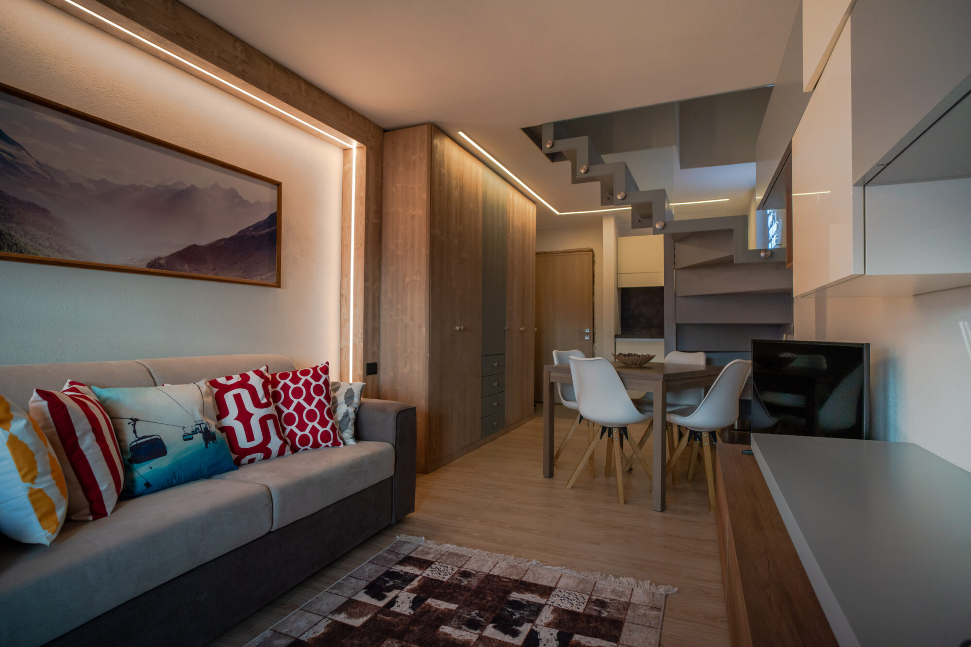 Lejlighederne er af varierende størrelse, er individuelt indrettet og forskellige standarder. Typisk består lejlighederne af 1-4 soveværelser, stue med sovesofa, spisebord og åbent køkken samt bad og toilet. Vi tilbyder et udvalg af velholdte og renoverede lejligheder i hjertet af Cervinia, alle ideelle til en uforglemmelig skiferie. Lejlighederne varierer i størrelse og stil – fra hyggelige toværelses til rummelige fireværelses boliger – men fælles for dem alle er deres gode stand, moderne faciliteter og fremragende beliggenhed tæt på skilifter, pister og byens hyggelige centrum.