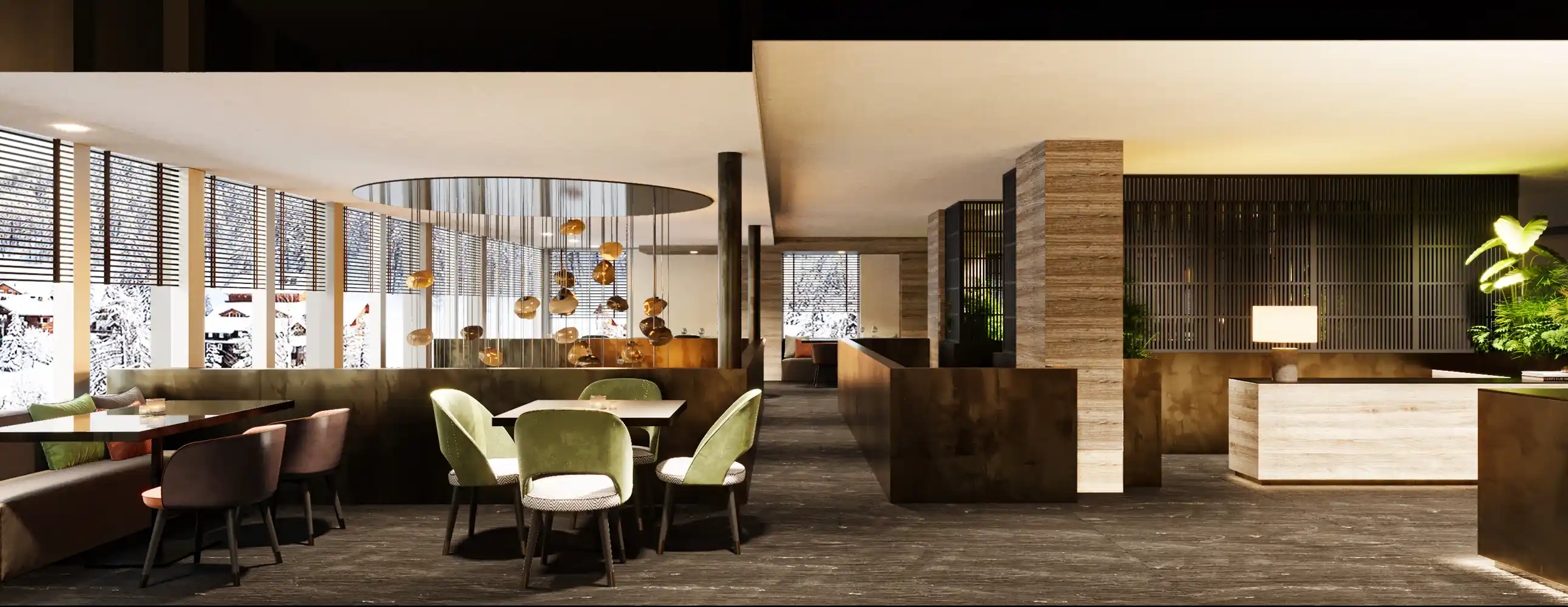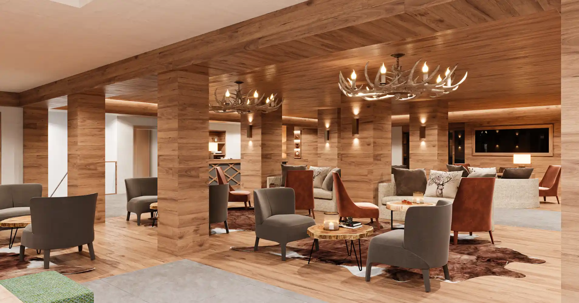 Hotellet har indbydende lobbyområde med en hyggelig pejs. Der tilbydes alt til en dejlig afslappende skiferie i smukke omgivelser. Du finder bl.a. concierge, butik, restauranter, barer med levende musik og DJ, stor flot pool, minipool til børn, spa, fitness, Baby/Mini/Teenage klub.
