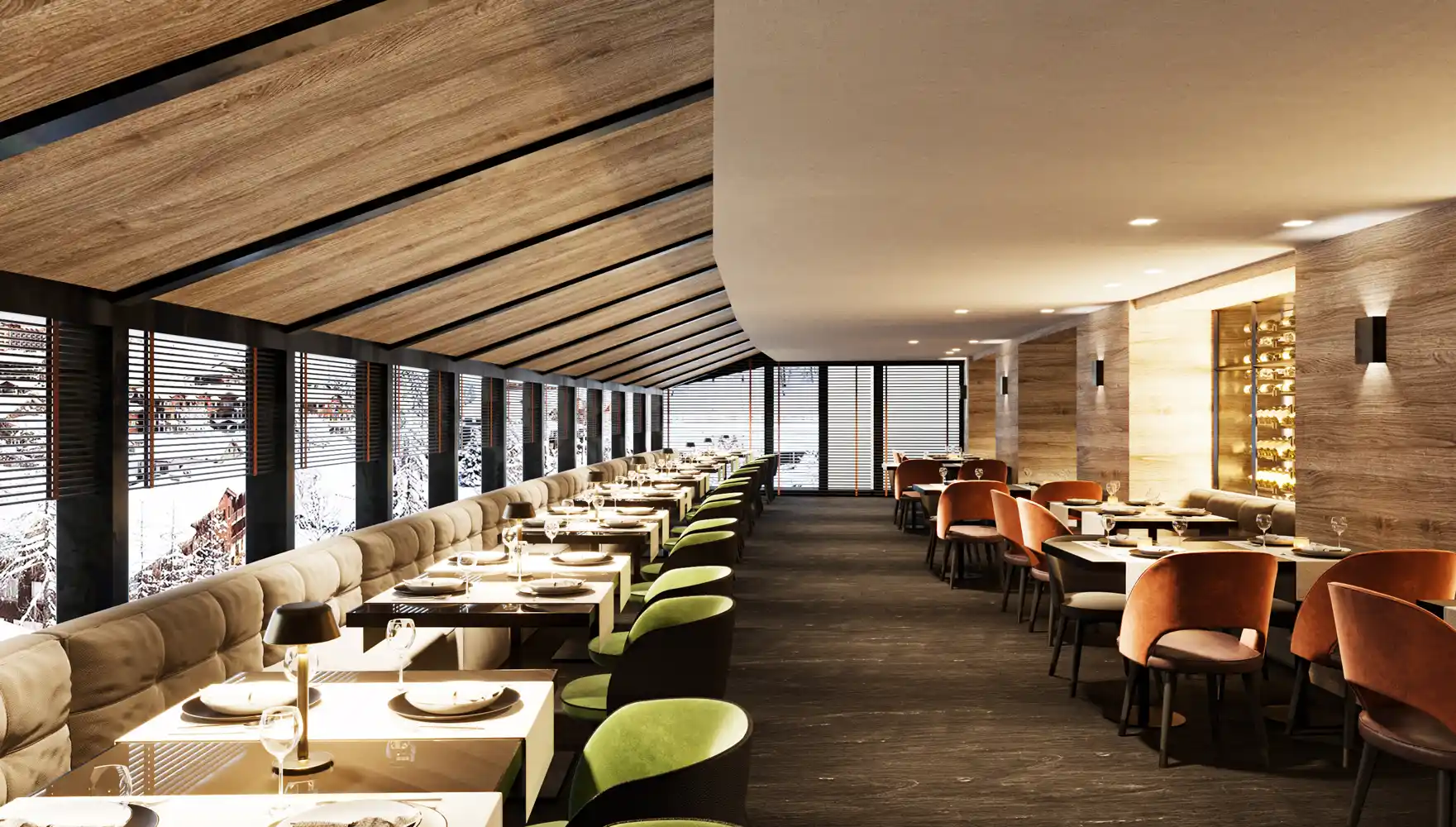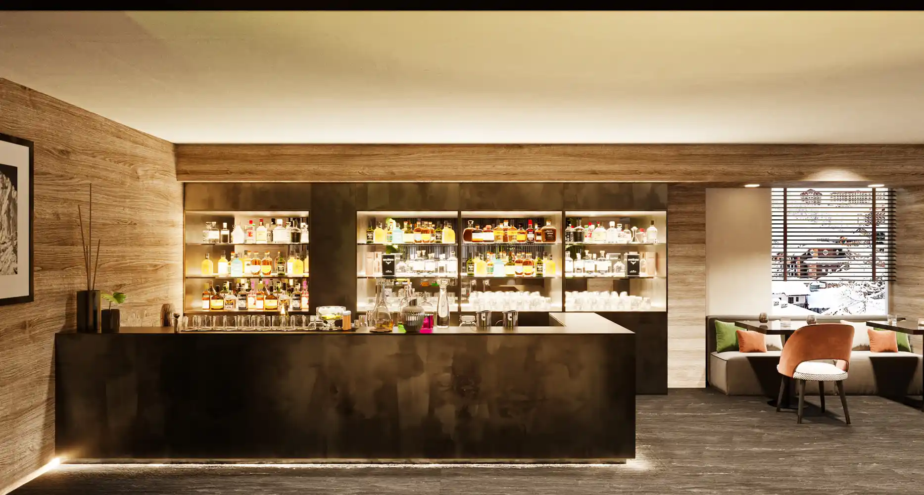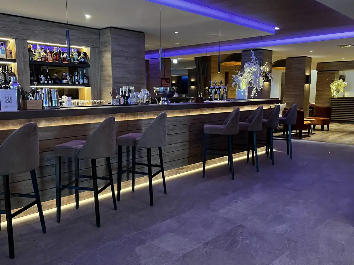 Efter middagen kan man slappe af foran pejsen i lobbyområdet eller man kan nyde en kølig drink i hotellets bar, hvor der er optræden fra live-band eller DJ. Og således kan man, uden at bevæge sig væk fra hotellet, få en perfekt afslutning på skidagen.