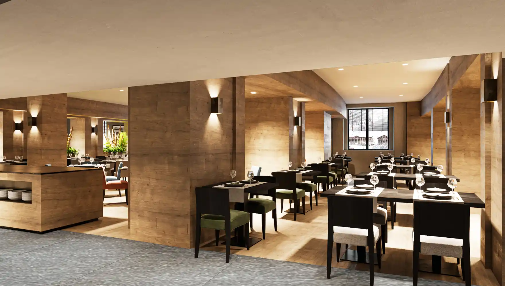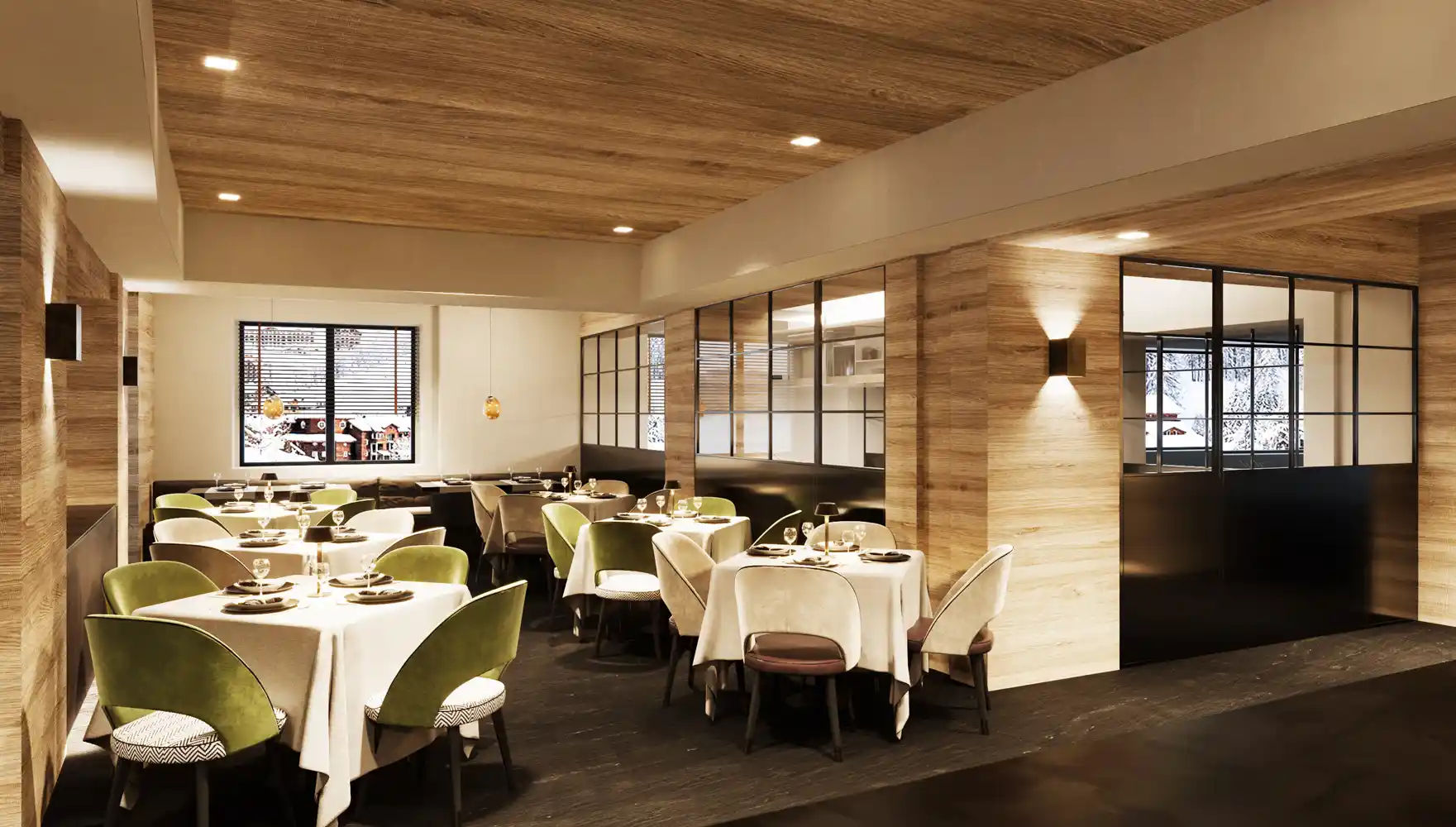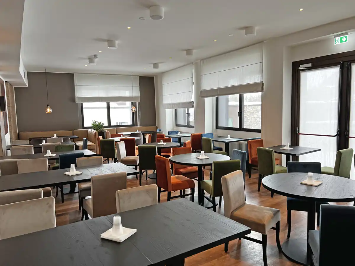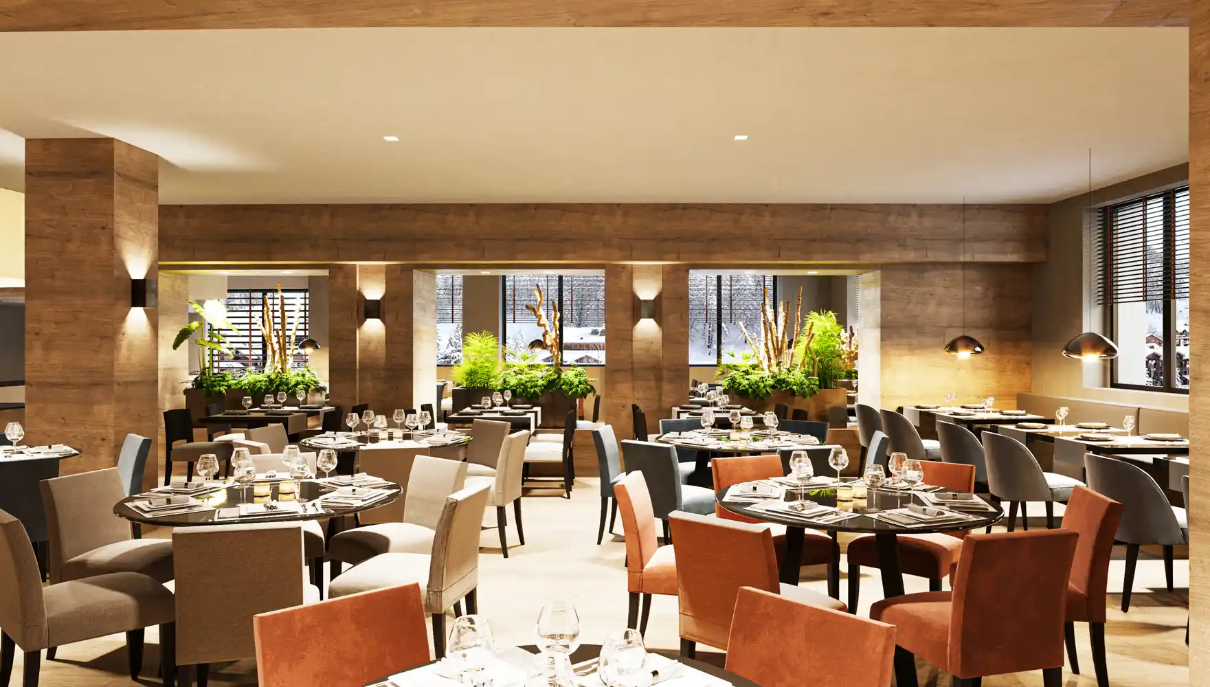 Halvpension med alle måltider i fuldstændig nyrenoveret flot buffetrestaurant med live-cooking. Eftermiddagssnack, gratis brug af swimmingpool og fitnesscenter, samt transport til skilifterne er inkluderet i opholdet.