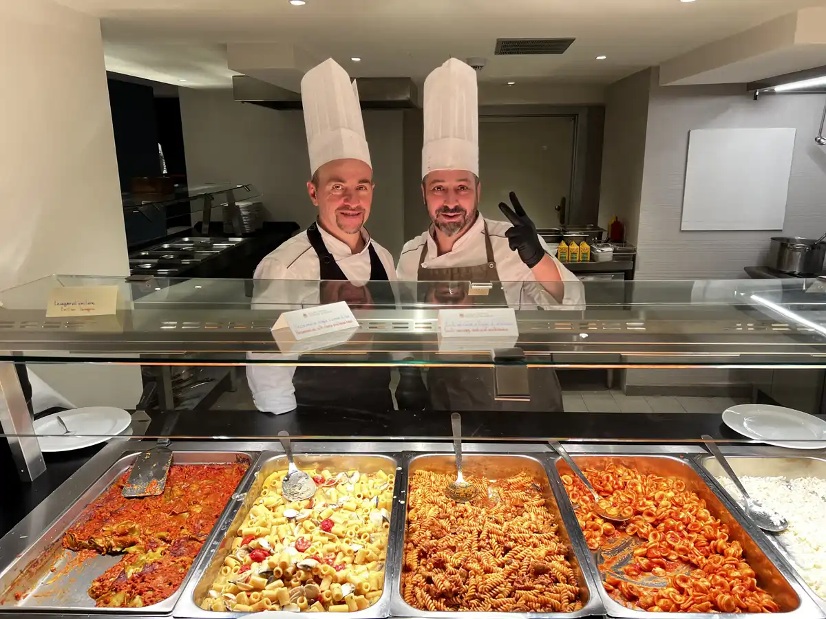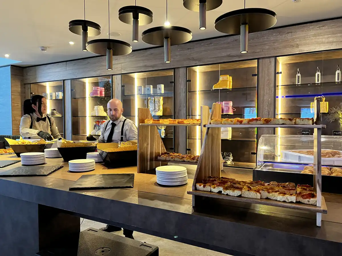 Et ophold på den 4-stjernede del af hotellet, byder på lækker morgenbuffet, så du er klar til dagens skiløb. Om aftenen kan du sætte dig til bords og nyde en aftenbuffet, der er fyldt med smagfulde italienske retter.