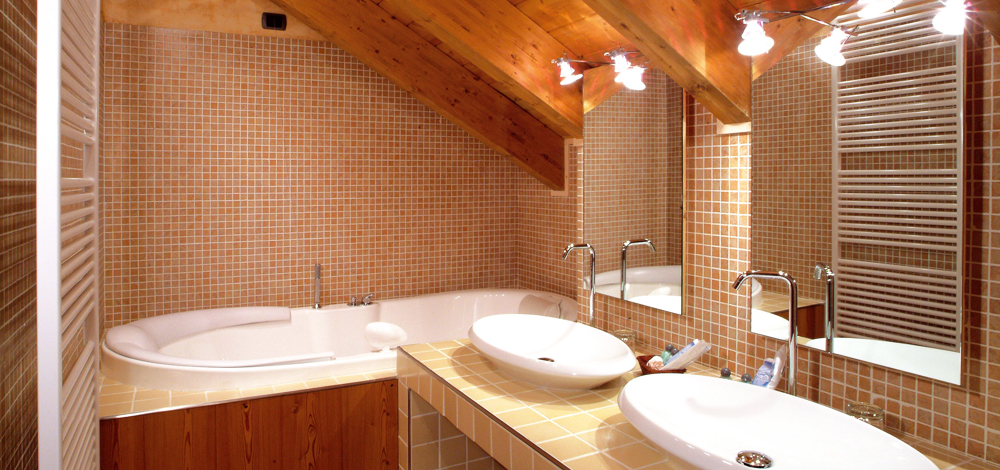 Stor og rummelig chaletlejlighed med to soveværelser med 'king-size' senge og en opholdsstue med dobbelt sovesofa samt badeværelse med brusebad, WC og et seperat toilet. Mod forespørgsel er det muligt at få et værelse med boblebad.