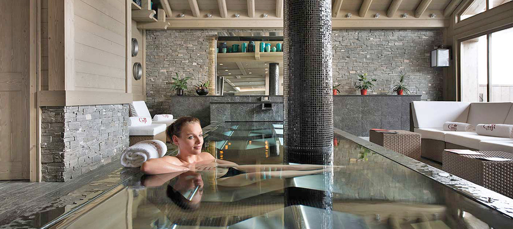Ca. 570 kvm. fordelt pÃ¥ tre etager. Chalet med plads til 10 personer fordelt i fem soveværelser med eget badeværelse. Privat indendørs pool med jet-stream, vandfald og tyrkisk bad. Egen skikælder. Eget personale (butler, kok, tjener og rengøringspersonale). Velkomstdrink, champagne reception ved ankomsten, kolde og varmedrikke er tilgængelige under hele opholdet.  Â
