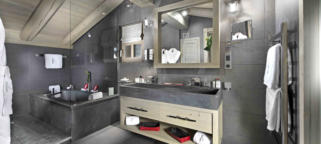 Ca. 635 kvm. fordelt på fire etager. Chalet med plads til 10 personer fordelt i fem soveværelser med eget badeværelse. Privat stor indendørs pool med jet-stream, vandfald og tyrkisk bad. Egen skikælder. Eget personale (butler, kok, tjener og rengøringspersonale). Velkomstdrink, champagne reception ved ankomsten, kolde og varmedrikke er tilgængelige under hele opholdet.