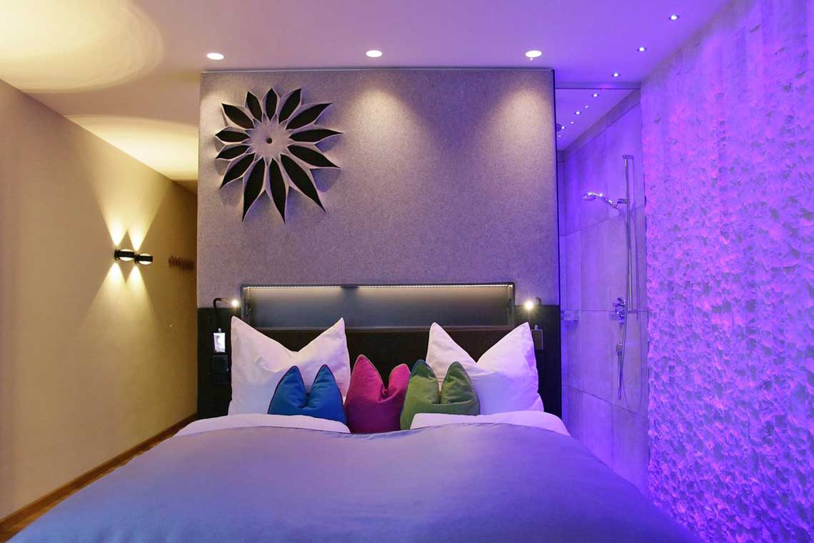 Himmelschlüssel værelse, 32 m2 komfortabelt dobbeltværelse med elektrisk kamin. Endvidere har værelset balkon, karbad, minibar, hårtørrer, Wifi, fladskærms tv og telefon. Hund er ikke tilladt.