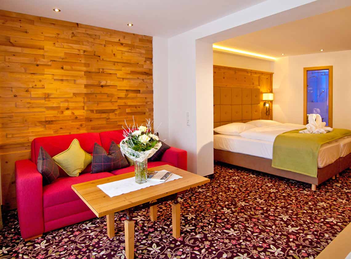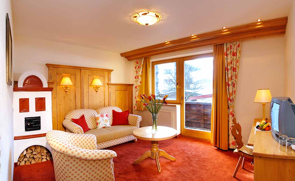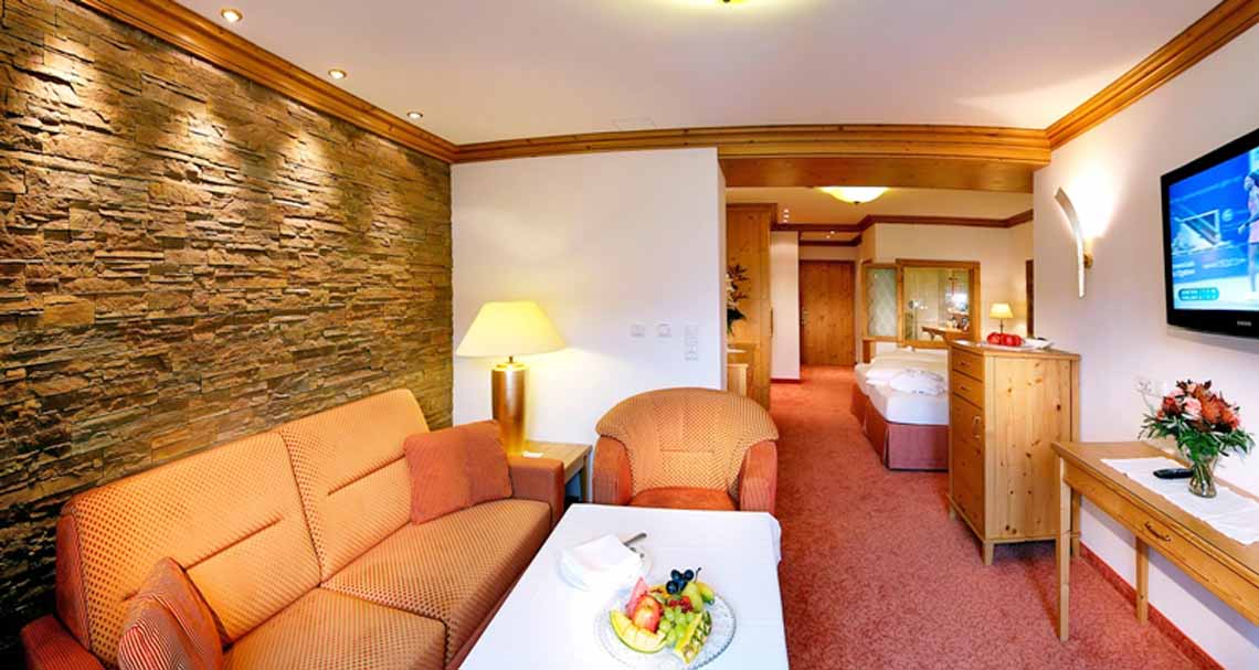 Hartkaiser Suite , 55 m2 dejlig suite til den særlige ferie. Endvidere har suiten balkon, kar- og brusebad, minibar, hårtørrer, Wifi, fladskærms tv og telefon. Hund er ikke tilladt.