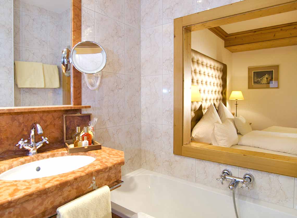 Bergfeuer, 75 m2 ren luksus suite med åben pejs og udsigt til Wilder Kaiser. Endvidere har suiten balkon, kar- og brusebad, dobbelt håndvask, walk-in garderobe, minibar, hårtørrer, Wifi, fladskærms tv og telefon. Hund er ikke tilladt.