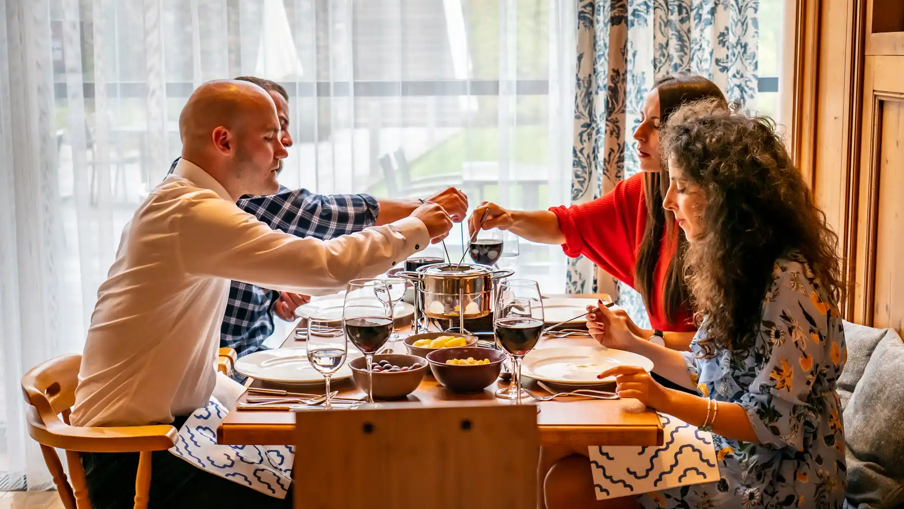 Vi tilbyder vores gæster halvpension og udover en stor morgenbuffet, vil du i restauranten blive forkælet med sæsonbestemt tyrolsk og østrigsk køkken. Fra buffeten kan man nyde supper, specialoste og sprøde salater. Vælg forret, hovedret og dessert fra dagligt skiftende menuer. Efter middagen kan man rykke i baren, hvor der serveres lækre østrigske vine, signaturcocktails og lokale øl i hyggelige omgivelser.