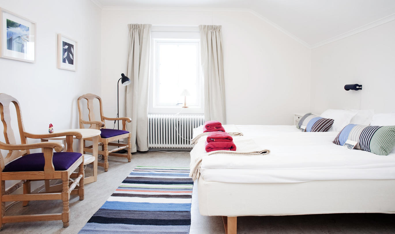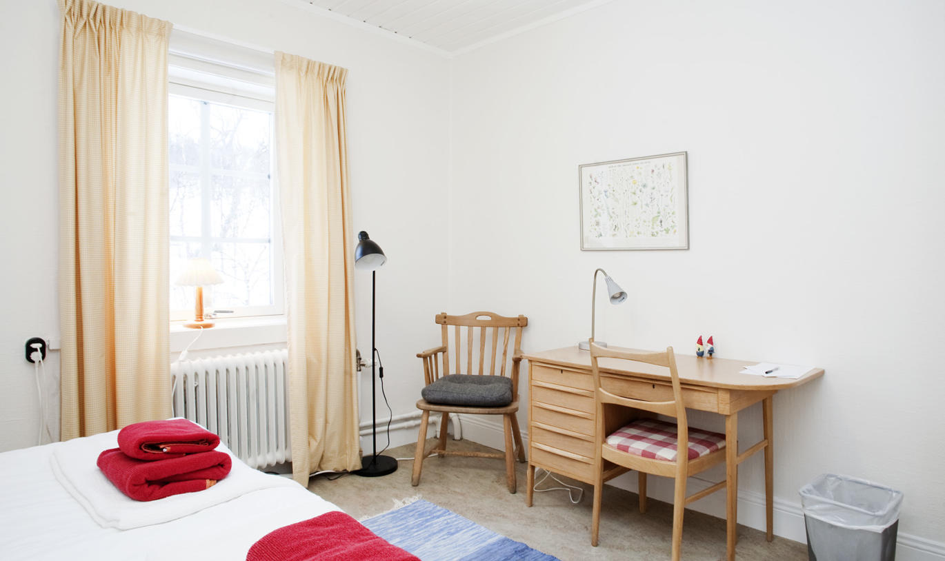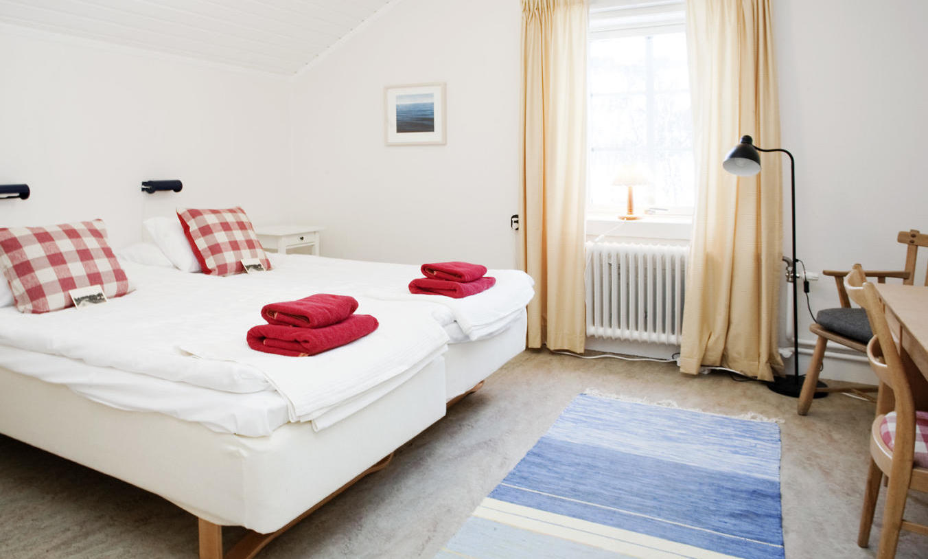 Standard dobbeltværelse: I den charmerende gamle bygning, Norra Flygeln, ligger de 9 standard dobbeltværelser. Der er plads til 1-2 personer. Rummet har en dobbeltseng (80 cm) eller to enkeltsenge (90 cm) og eget badeværelse med toilet og brusekabine. Husdyr er ikke tilladt.