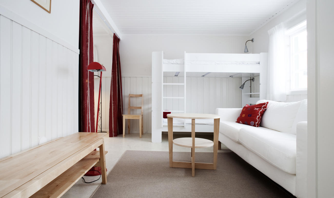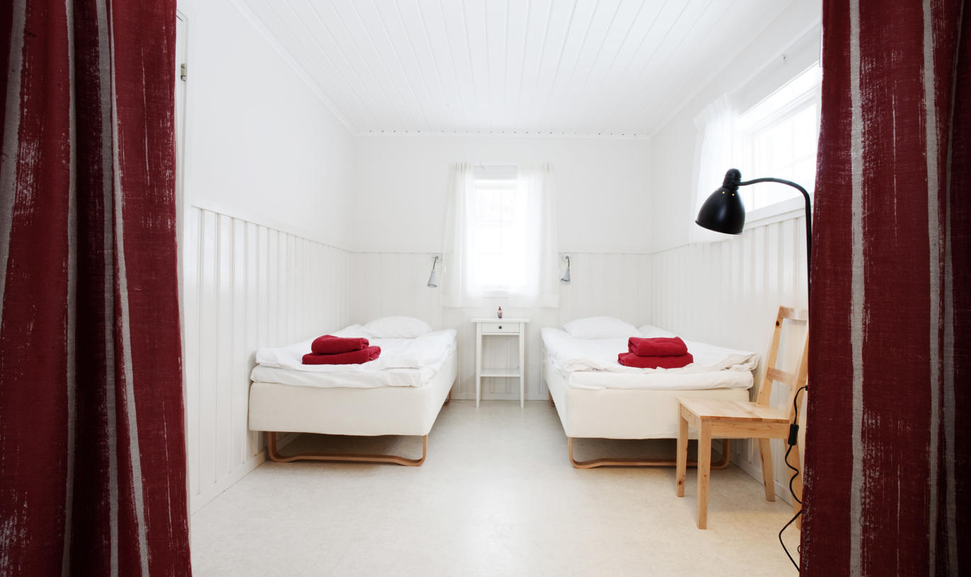 Familieværelse: Fjällnäs har to familieværelser. Et af familieværelserne har egen indgang, og det er tilladt med kæledyr. Begge værelser har eget badeværelse med toilet og brusekabine. Der er plads til 4 personer. I værelset med egen indgang er der en dobbeltseng (140 x 200 cm) og en køjeseng. Det andet familieværelse har to enkeltsenge (90 cm) og en køjeseng.