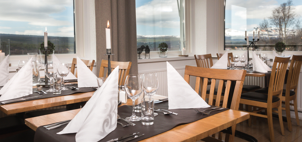 I kan også glæde jer til både morgenbuffet og middag (2 retter eller buffet), som består af lokale svenske råvarer af høj kvalitet kreeret af hotellets dygtige kokke. Retterne nydes i hotellets restaurant som har en fantastisk panoramaudsigt over Härjedalens Fjelde.