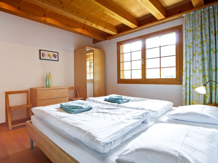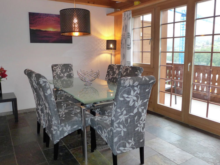 Chalet lejlighed Eiger er 126 m2 fordelt på to etager og har formidabel udsigt fra altanen, hvor man blandt andet kan se Eiger bjerget. Indretningen er moderne og her er god plads til hele familien, kollegaerne eller vennerne.