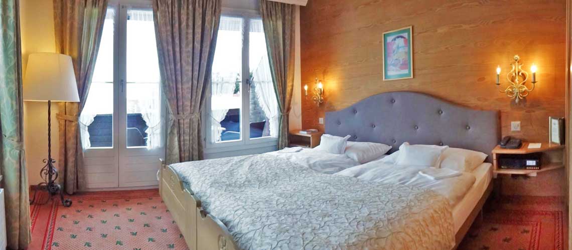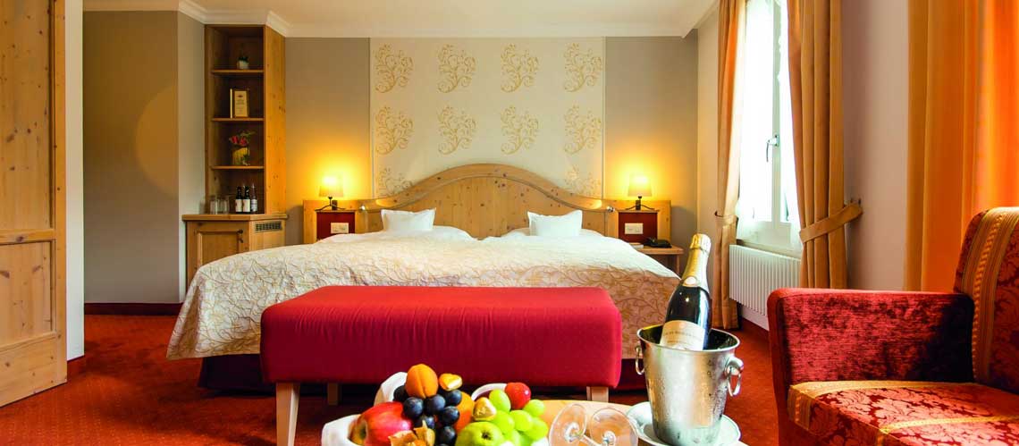 Comfort og superior dobbeltværelse. Ca. 25-28 kvm med to queensize enkeltsenge eller en kingsize dobbeltseng. På værelset er der skrivebord, lænestol, TV, telefon, safe, minibar og badeværelse med badekar og WC. Comfort dobbeltværelsernehar nordvendt vindue og mulighed for en ekstra opredning. Superior dobbeltværelserne har sydvendt balkon eller terrasse med udsigt til Eiger-bjerget.