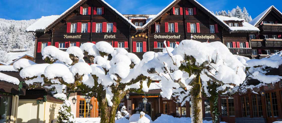 Centralt i Grindelwald, ligger byens eneste 5-stjernet hotel, det eksklusive Romantik Hotel Schweizerhof. Fra hotellet er der udsigt til de berømte bjerge ”Eiger” og ”Lauberhorn”.  Det romantiske hotel emmer af luksus og komfort, så her skal I bo, hvis I vil have det bedste udgangspunkt for skiferien med høj kvalitet i fokus.
