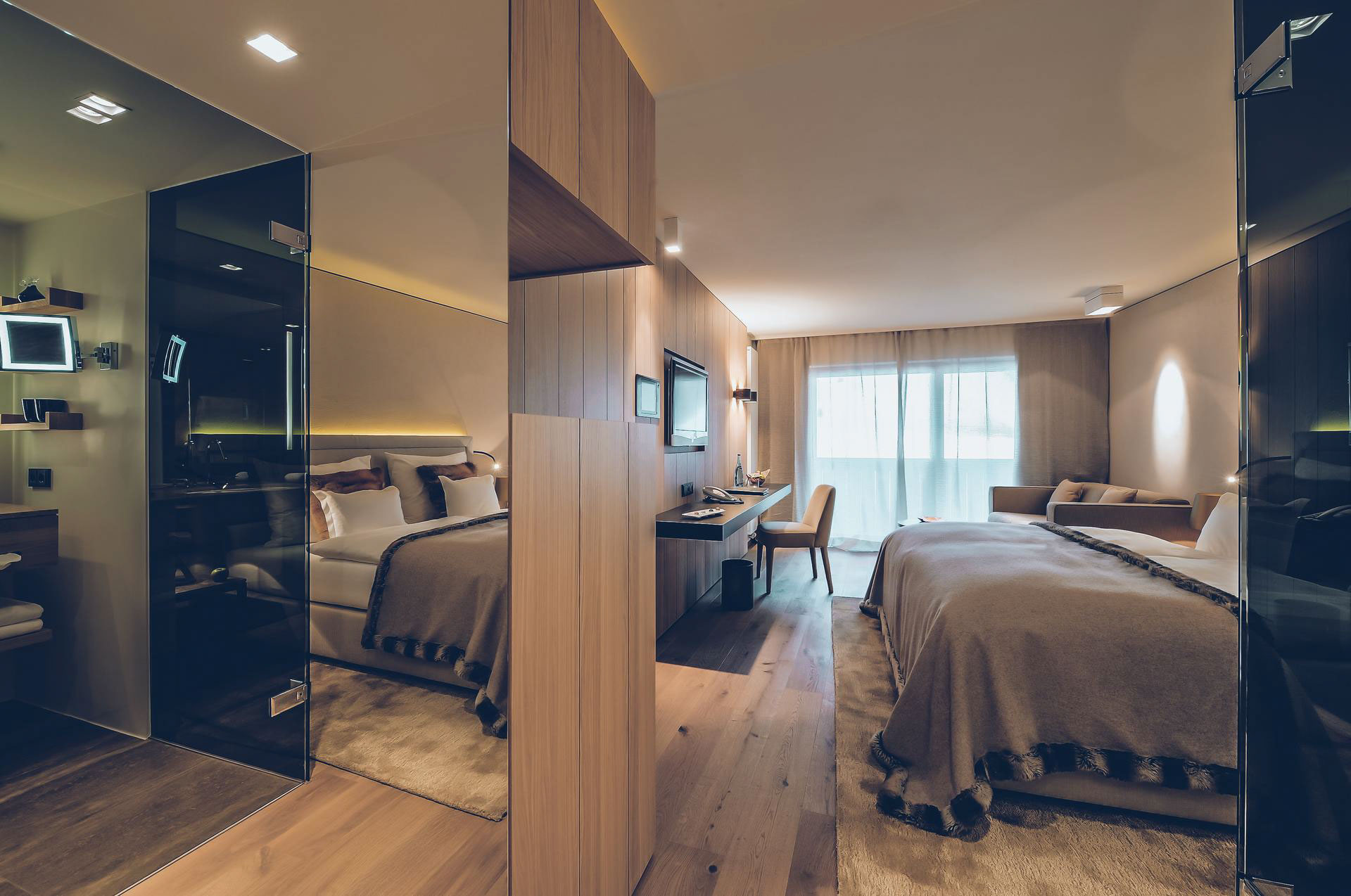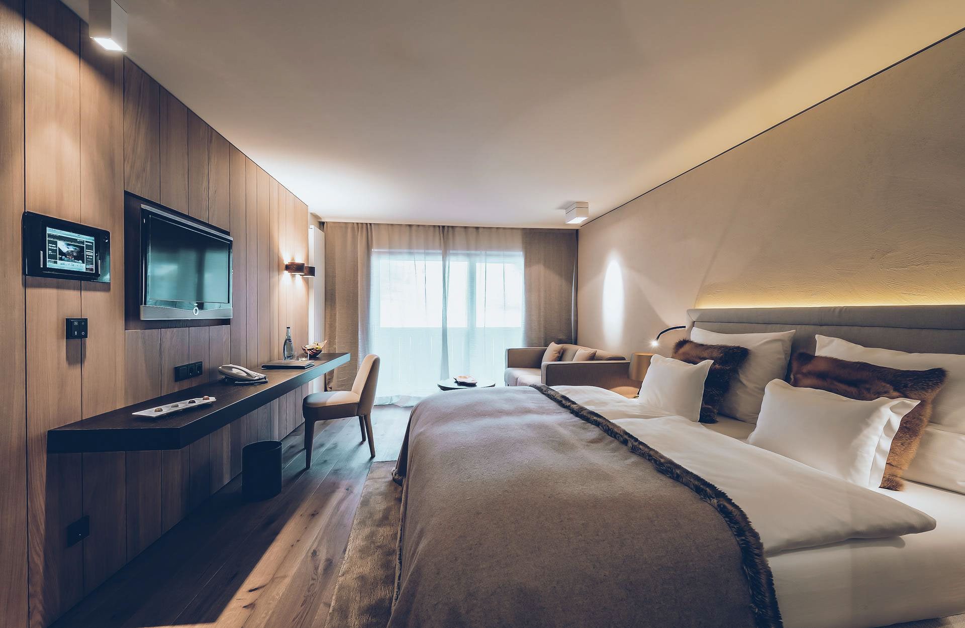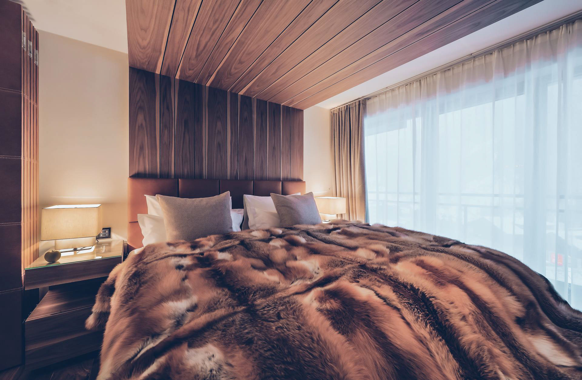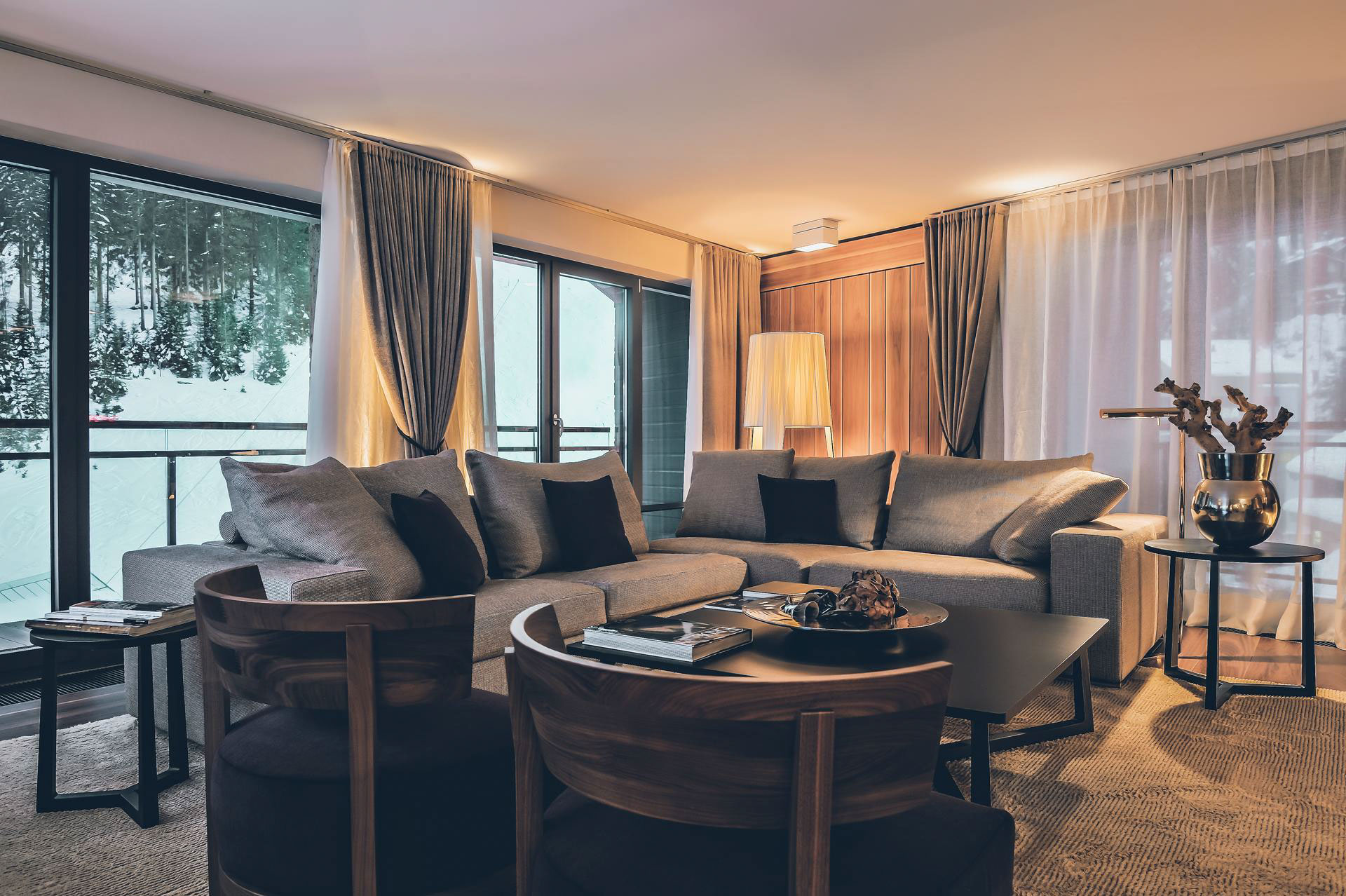 Hotellets værelser og suiter er rummelige og indrettet med luksuriøse materialer og møbler, som skaber en afslappende atmosfære efter en dag på pisterne. De fleste værelser har panoramaudsigt over bjergene, og nogle tilbyder endda private balkoner. Indretningen er moderne og elegant med højteknologiske faciliteter, som giver ekstra komfort.