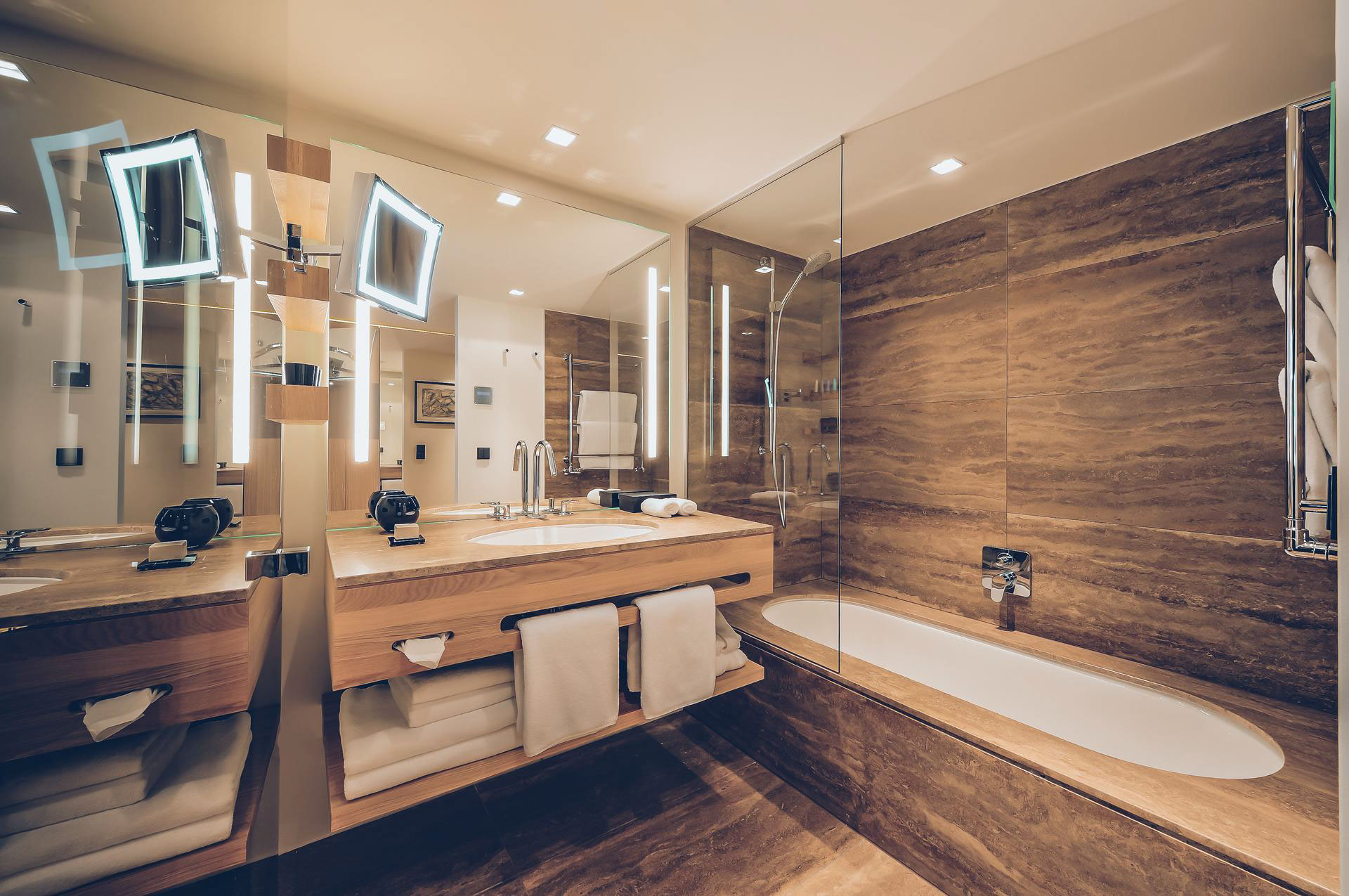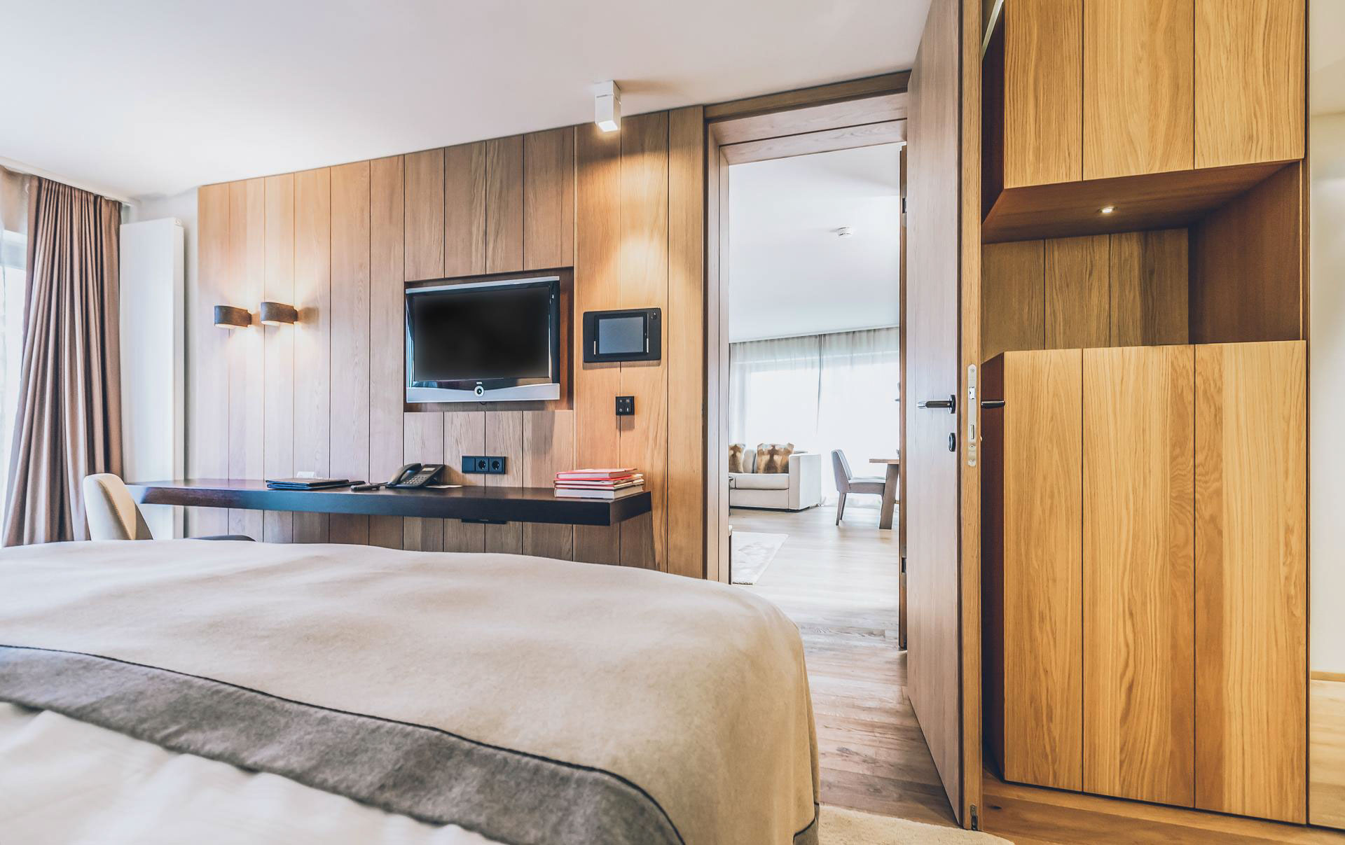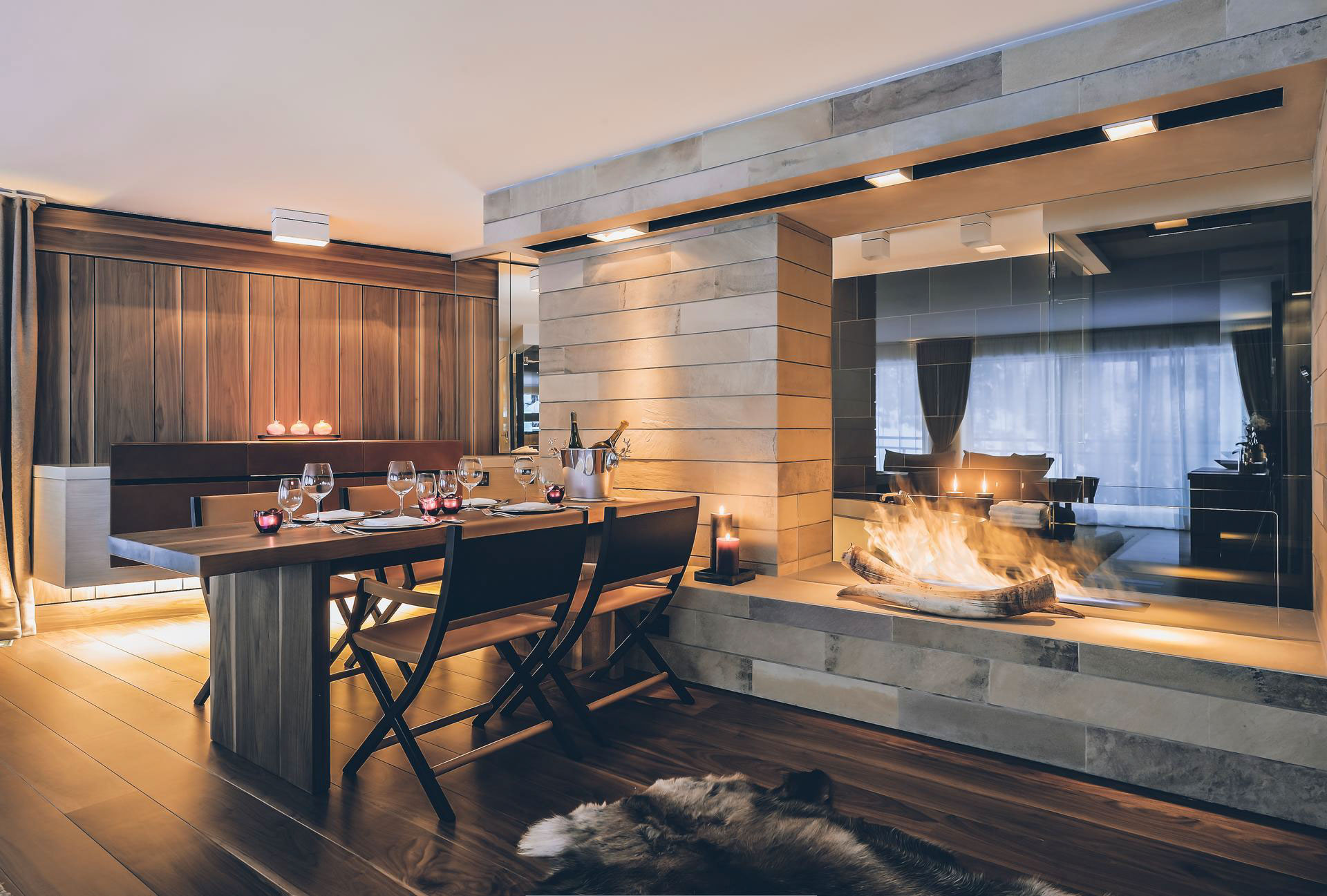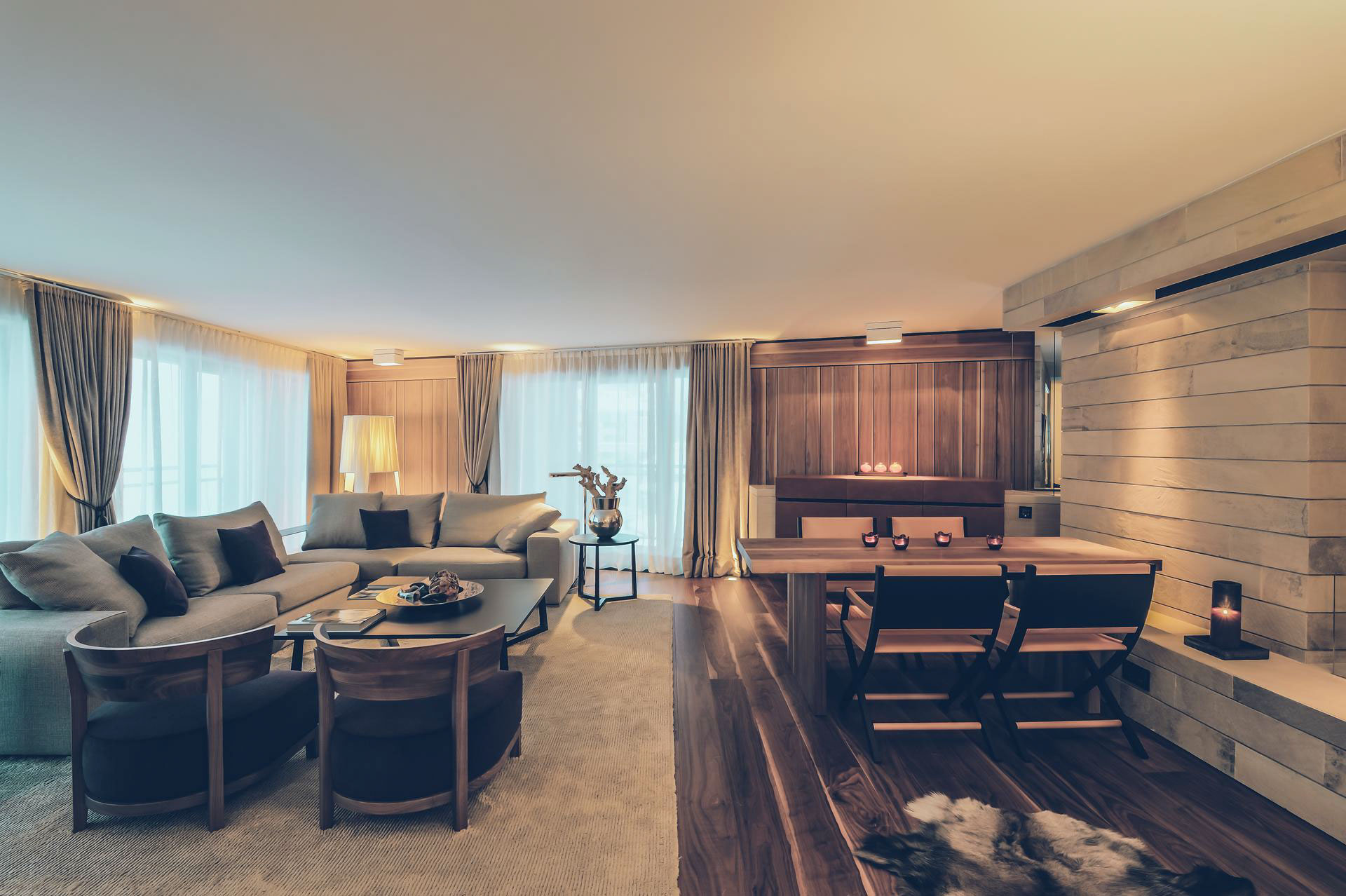 Hotellets værelser og suiter er rummelige og indrettet med luksuriøse materialer og møbler, som skaber en afslappende atmosfære efter en dag på pisterne. De fleste værelser har panoramaudsigt over bjergene, og nogle tilbyder endda private balkoner. Indretningen er moderne og elegant med højteknologiske faciliteter, som giver ekstra komfort.