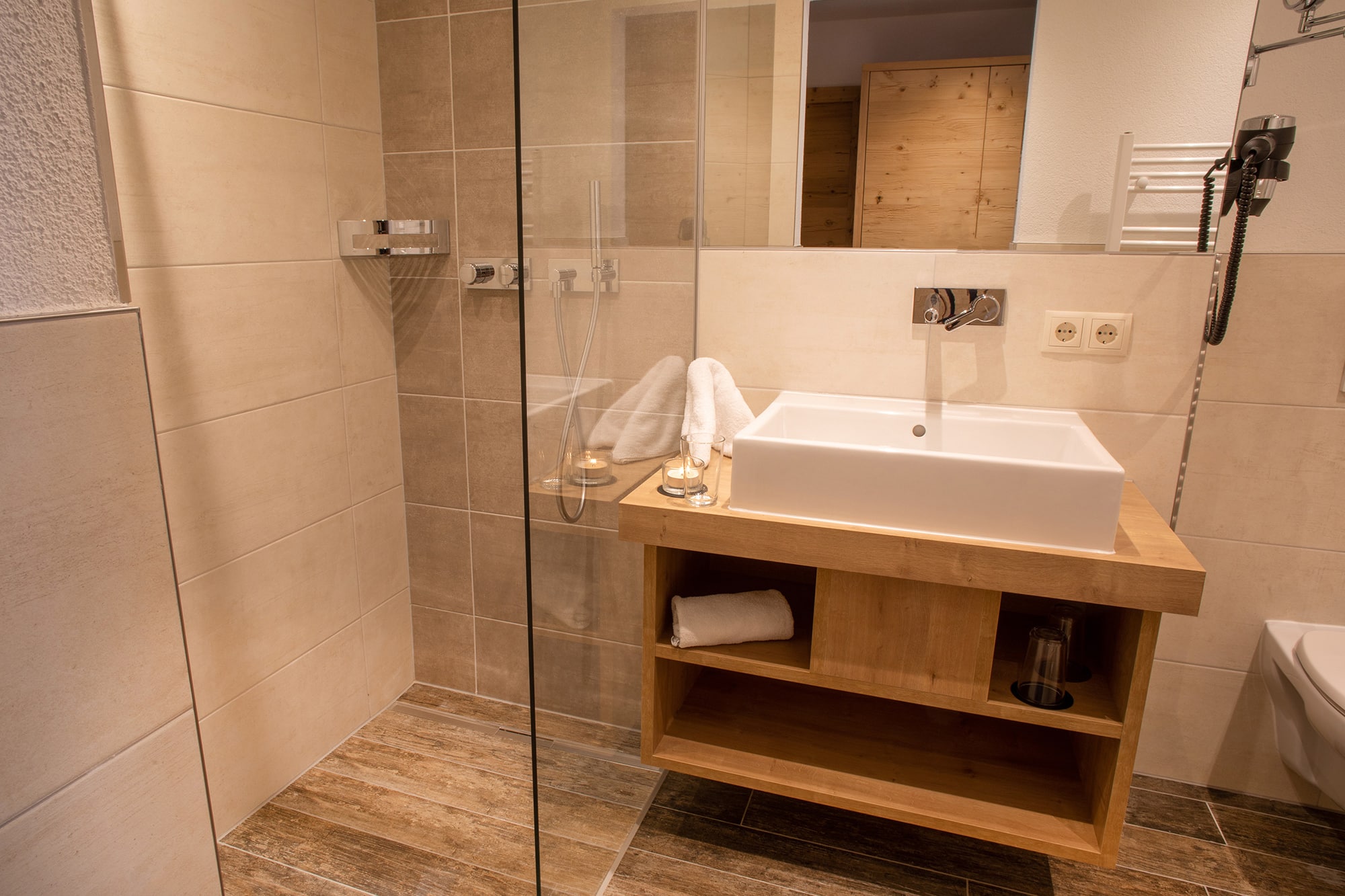 Alle værelser er udstyret med eget badeværelse i moderne og traditionel østrigsk stil med masser af træ og varme farver.