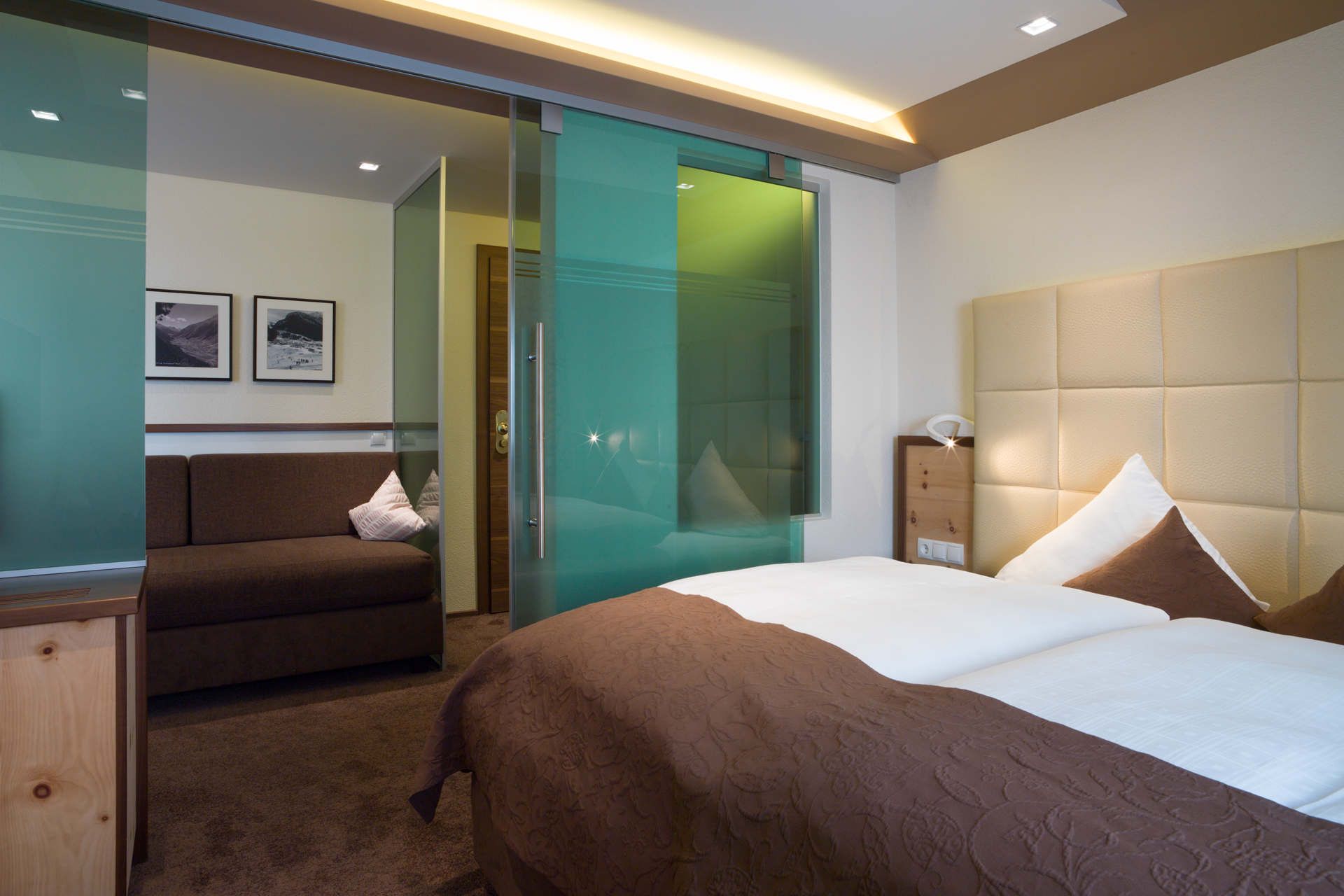 Hotellets 30 værelser og suiter kombinerer komfort og alpin charme med fornemme og stilfulde faciliteter. Værelserne er lyse, nydelige og individuelt indrettet. Vælg mellem standard værelser, suiter og VIP suiter. Alle værelser har inkluderet TV, safety box, radio, separat badeværelse, trådløst internet, skiopbevaring og fri adgang til hotellets wellness-afdeling. Der tilbydes også parkering i hotellets egen garage, mod betaling.