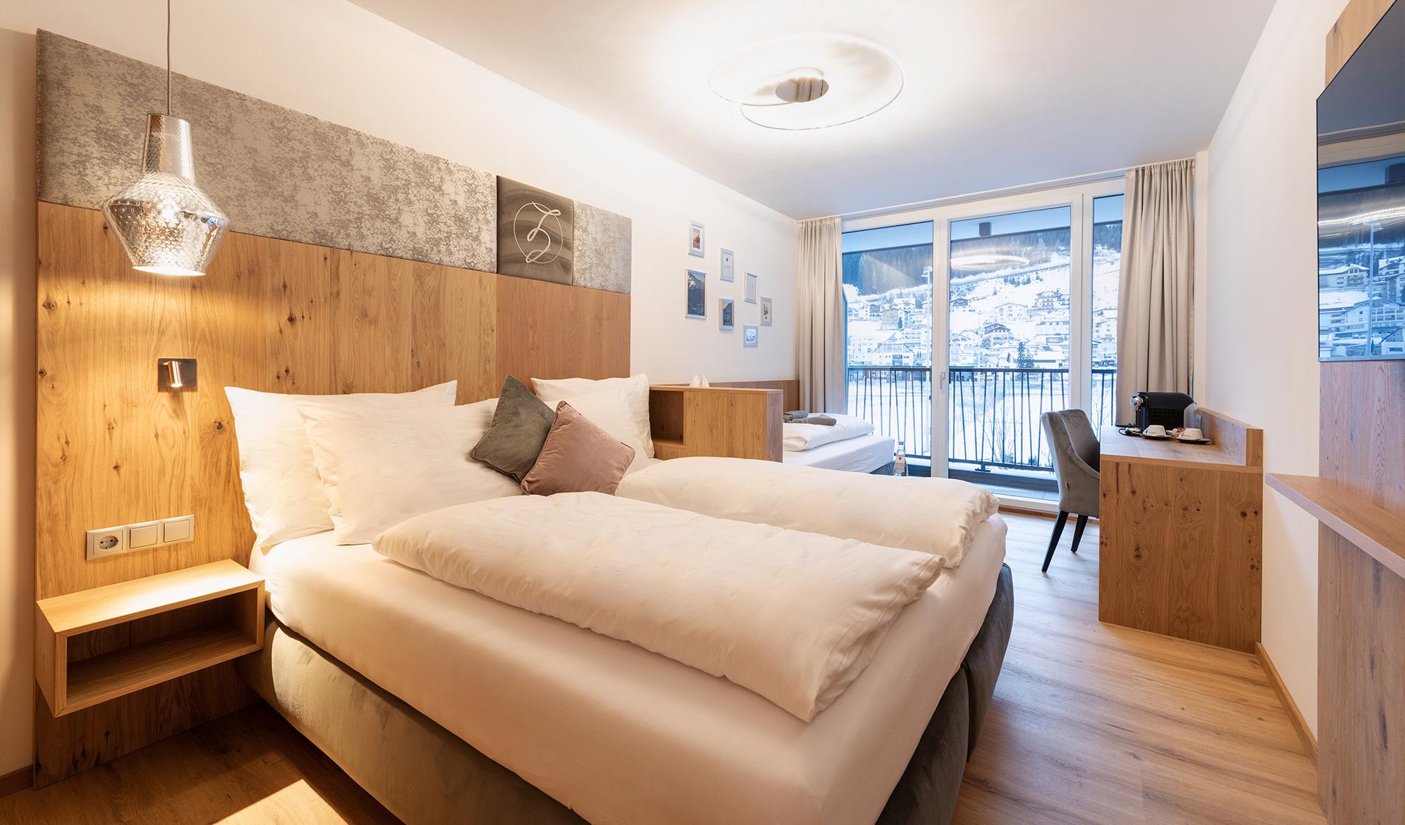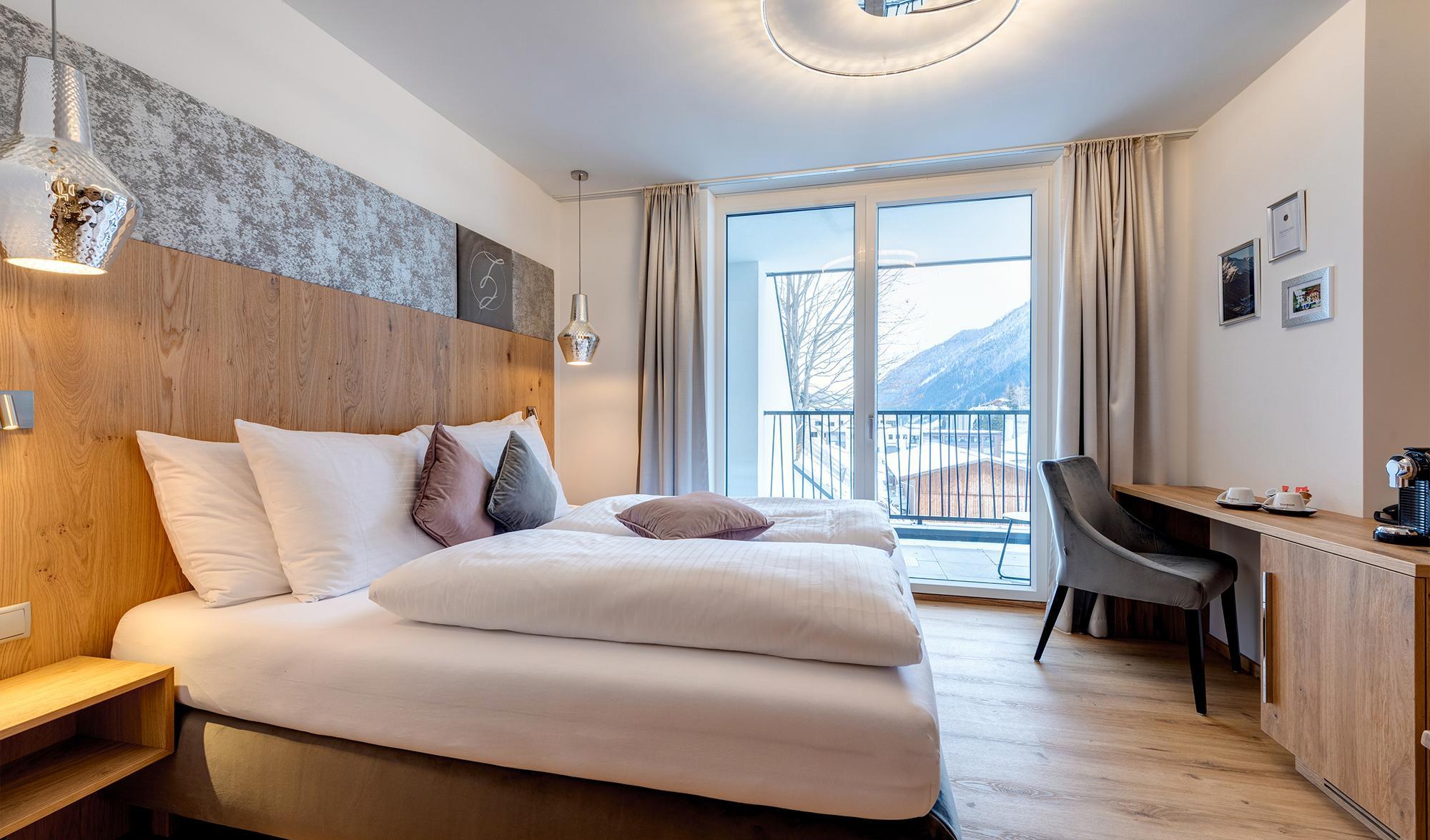 Hotellet tilbyder lyse og stilfulde værelser i flere kategorier – fra komfortable dobbeltværelser til rummelige suiter med balkon og udsigt til de omkringliggende bjerge. Indretningen er moderne med et alpin præg, og alle værelser er udstyret med de faciliteter, der gør opholdet behageligt, hvad enten man rejser som par, familie eller i en mindre gruppe.