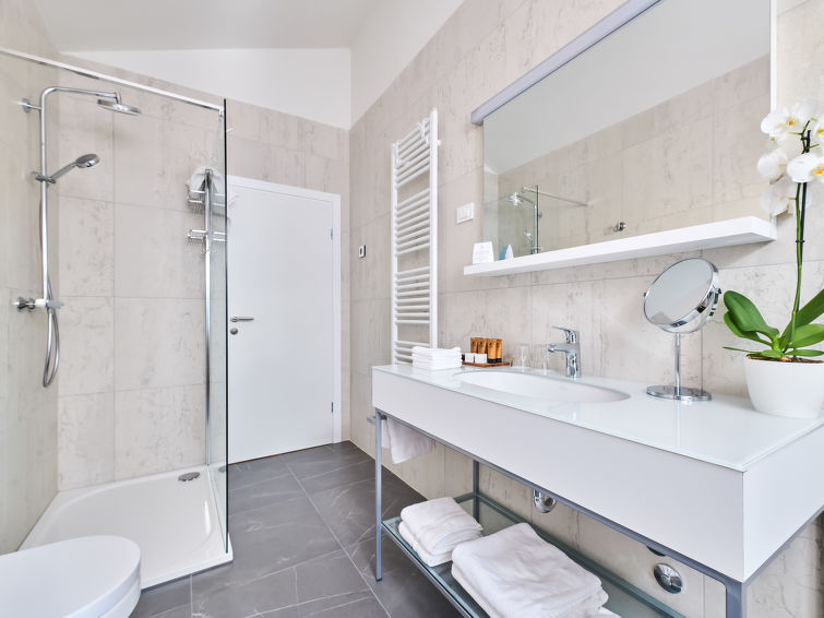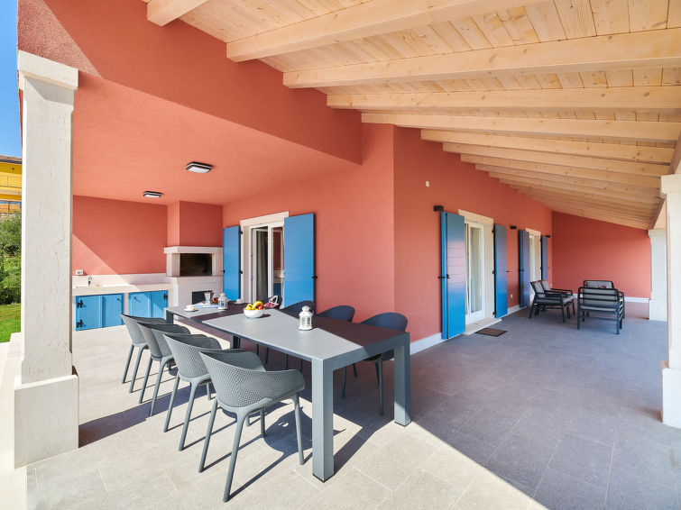 5-værelse-villa 240 m2 på 2 etager. Komfortabelt indrettet: stue/spisestue 60 m2 med sat-TV (fladskærms TV), stereoanlæg. Udgang til have, til terrasse. 2 værelse, alle værelser med 2 senge (100 cm, længde 210 cm), brus/WC og sat-TV (fladskærms TV). Udgang til have, til terrasse. Åbent køkken (ovn, opvaskemaskine, 4 keramiske kogeplader, mikroovn, fryser, elektrisk kaffemaskine). Særskilt toilet. Overetage: 1 værelse med 1 fransk seng (200 cm, længde 210 cm), bad/brus/WC og sat-TV (fladskærms TV). Udgang til terrasse. 1 værelse med 1 fransk seng (200 cm, længde 210 cm), brus/WC og sat-TV (fladskærms TV). Udgang til terrasse. Gulvvarme, varmluftsopvarmning. Terrasse 47 m2, overdækket, 2 terrasser 16 m2. Havemøbler, liggestole. Udsigt over swimmingpoolen og have. Til benyttelse: pengeskab, strygejern højstol, barneseng, hårtørrer. Internet (trådløs LAN [WLAN], gratis). Bemærk venligst: ikke-ryger hus.
