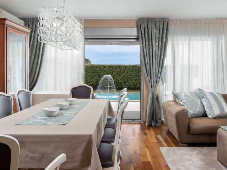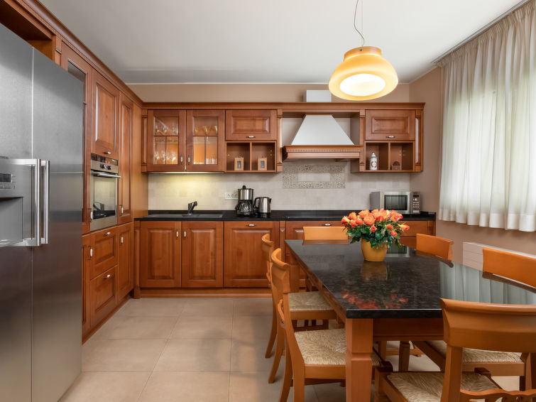 7-værelse-villa 460 m2 på 3 etager, syd vendt. Pæn og luksuriøs indrettet: stue/spisestue 45 m2 med åben kamin og sat-TV (fladskærms TV), klimaanlæg. Udgang til terrasse, til pool. 1 værelse med 1 fransk seng (180 cm, længde 200 cm), køkkenblok og TV (fladskærms TV), klimaanlæg. Udgang til terrasse. Åbent køkken (ovn, opvaskemaskine, 4 keramiske kogeplader, mikroovn, fryser, elektrisk kaffemaskine) med klimaanlæg. Brus/bidet/WC, særskilt toilet. Overetage: stue med sat-TV (fladskærms TV). Udgang til altan. 1 værelse med 2 senge (100 cm, længde 210 cm), TV (fladskærms TV), klimaanlæg. Udgang til altan. 1 værelse 25 m2 med 1 fransk seng (160 cm, længde 200 cm), TV (fladskærms TV), klimaanlæg. Udgang til altan. Køkken (ovn, opvaskemaskine, 4 keramiske kogeplader, mikroovn, fryser, elektrisk kaffemaskine) med sat-TV (fladskærms TV). Bad/bidet/WC, brus/WC. 2. Overetage: 1 værelse med omklædningsrum med 1 fransk seng (200 cm, længde 200 cm), TV (fladskærms TV), klimaanlæg. Udgang til altan. 1 værelse med omklædningsrum med 2 senge (100 cm, længde 210 cm), TV (fladskærms TV), klimaanlæg. Udgang til altan. Bad/bidet/WC, særskilt toilet, bad/brus/bidet/toilet, dobbelt håndvask, boblebad. Opvarmning (ekstra). 2 altan 25 m2, terrasse 50 m2 delvis overdækket. Havemøbler, grill (bevægelig), liggestole, opbevaringsrum. Udsigt over havet og swimmingpoolen. Til benyttelse: pengeskab, højstol, barneseng, hårtørrer. Internet (trådløs LAN [WLAN], gratis).