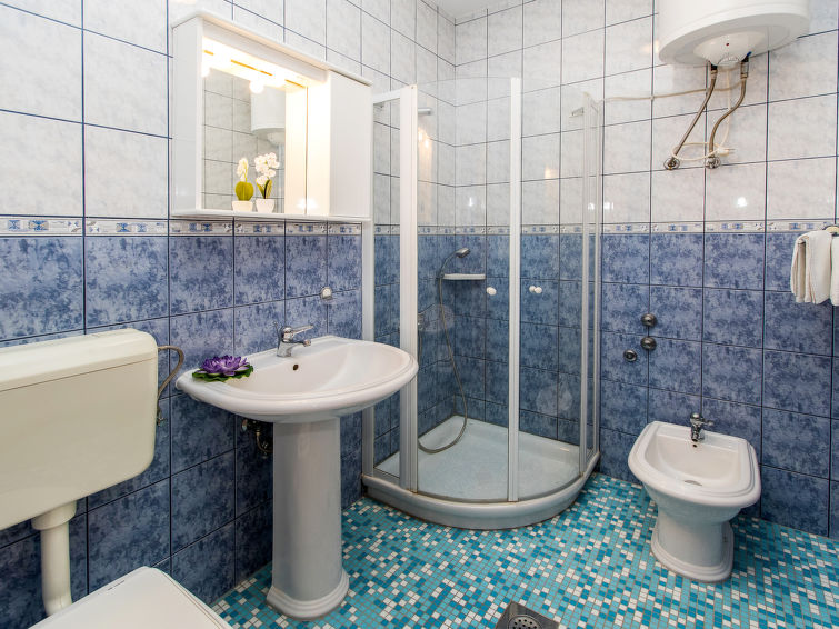 "Villa Anna (JAD111)", 2-værelse-lejlighed 45 m2. Stue/soveværelse med 2 senge, spisebord, sat-TV og klimaanlæg. Udgang til altan. 1 værelse med 1 dobbeltseng. Åbent køkken (4 kogeplader, opvaskemaskine, elektrisk kaffemaskine). Brus/WC. Altan 9 m2. Altanmøbler. Til benyttelse: internet (trådløs LAN [WLAN], gratis). Parkeringsplads. Bemærk venligst: ikke-ryger lejlighed.