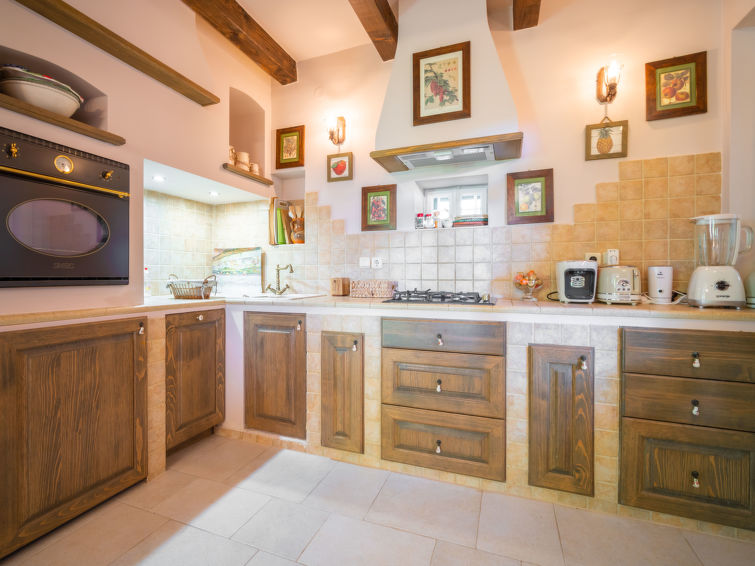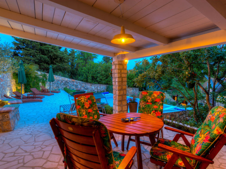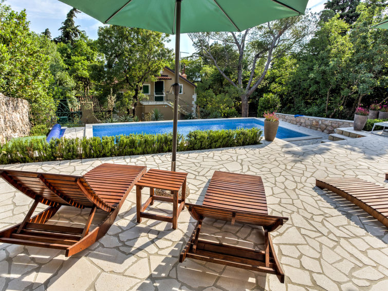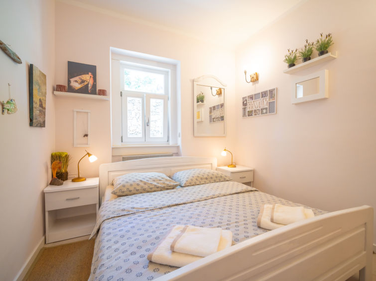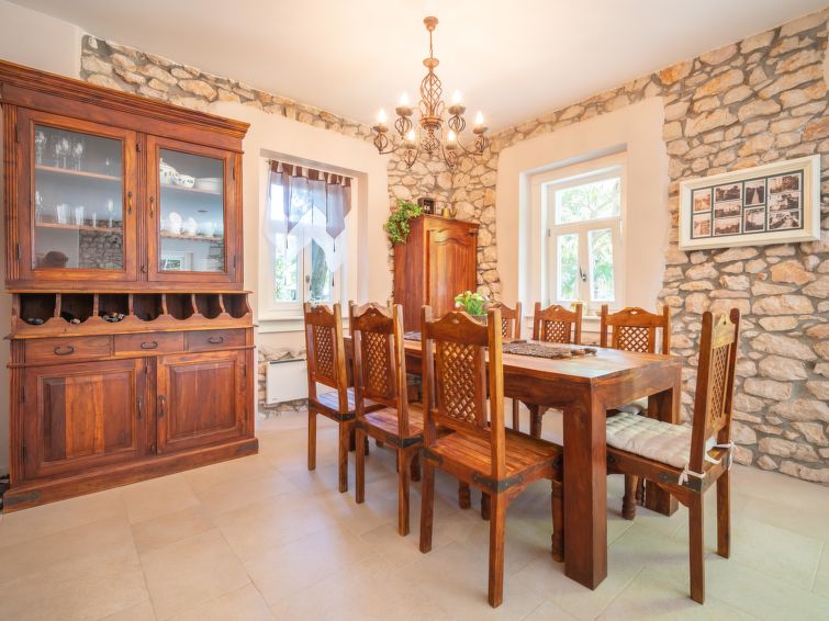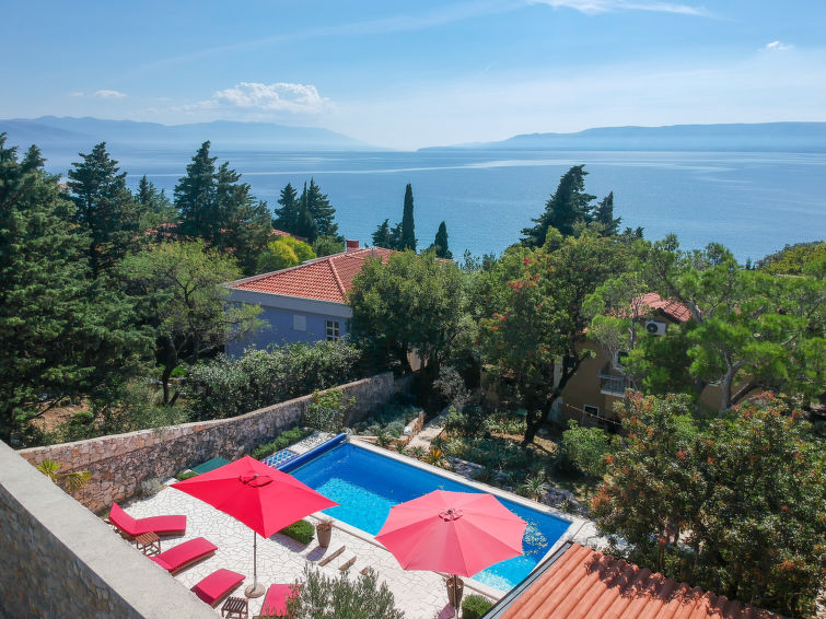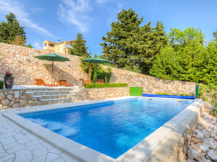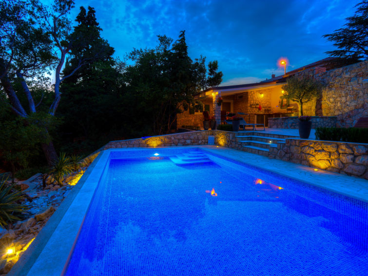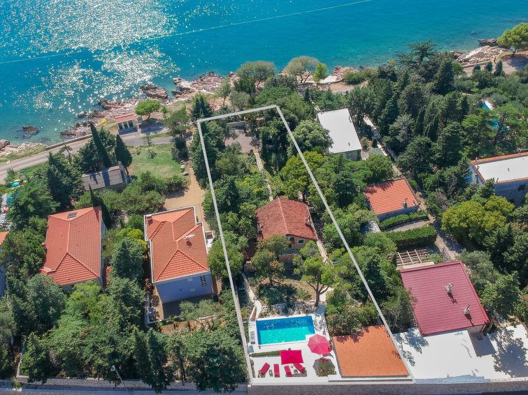 2-familiehus "Villa Mo-Re". 750 m fra bymidten af Novi Vinodolski, rolig, solrige beliggenhed, 20 m fra havet, 20 m fra stranden, i det grønne. Til disposition findes: grund 1'800 m2 (indhegnet), have med græsplæne 300 m2, træer, pool kantet med varme (4 x 8 m, 140 cm dyb, 11.04.-15.10.) med trappe. Udendørs brus, terrasse (13 m2), havemøbler (gynge, sandkasse). I huset: adgang til internet, sauna (til medbenyttelse). Parkeringsplads ved huset på grunden. Supermarked 400 m, restaurant 130 m, sandstrand 1.2 km kiselstenstrand 1.2 km, klippestrand 20 m, strandliggende pool 550 m, strand belagt med beton 20 m. Marina 300 m, tennis 1.1 km.