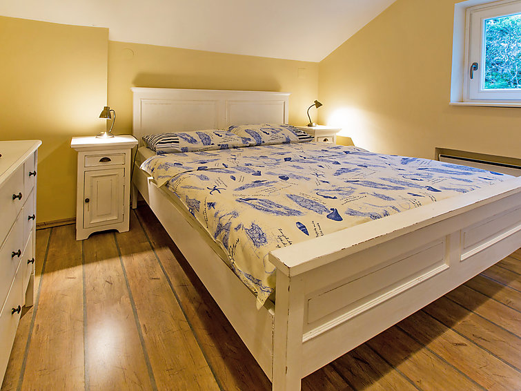 3-værelse-lejlighed 75 m2 i 1. etage. Stue/spisestue skrå, loftshøjde 155 - 280 cm med sat-TV (fladskærms TV), klimaanlæg. 1 skrå værelse, loftshøjde 155 - 280 cm med 2 senge (90 cm, længde 200 cm). 1 skrå værelse, loftshøjde 155 - 280 cm med 1 fransk seng (160 cm, længde 200 cm). Åbent køkken (2 keramiske kogeplader, mikroovn). Brus/WC. El-opvarmning. Til benyttelse: internet (trådløs LAN [WLAN], gratis). 1 husdyr/hund tilladt.