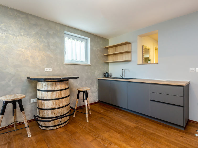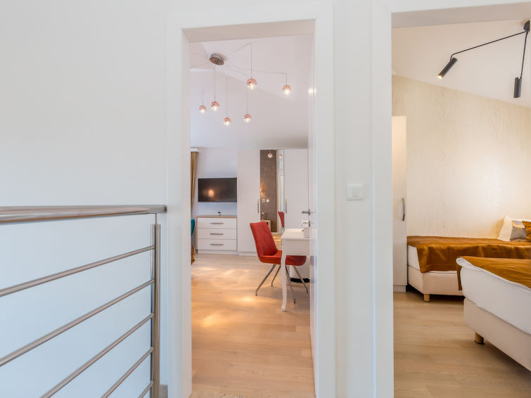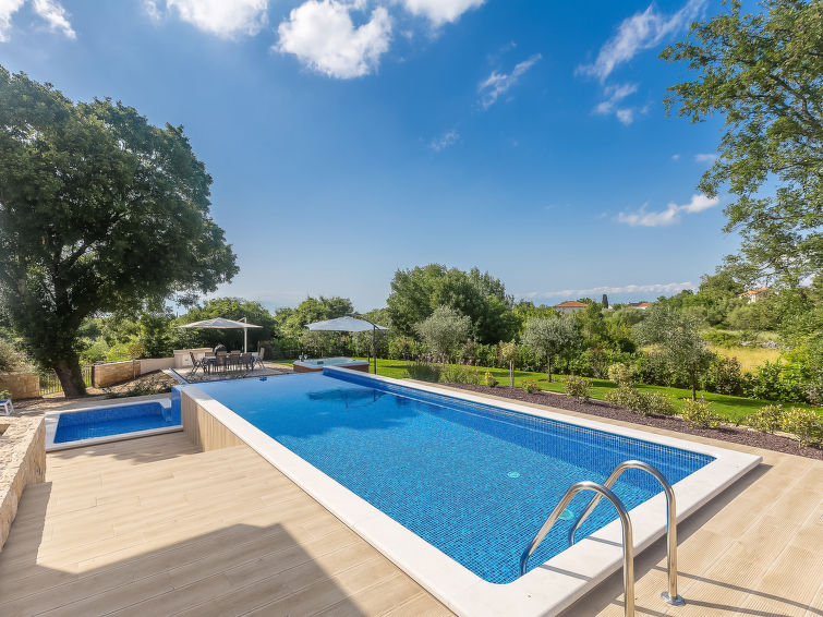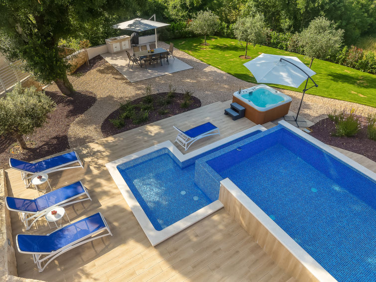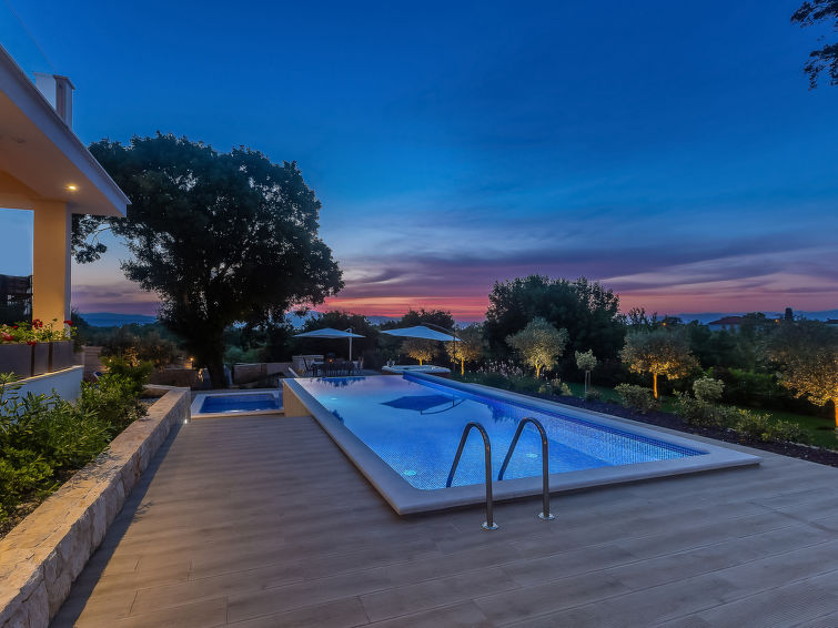 Smuk villa "Roko", på 3 etager. I lille byen Ljutići, 2.5 km fra bymidten af Malinska, rolig, solrige beliggenhed, 2.5 km fra havet, 2.5 km fra stranden, i det grønne. Til disposition: grund 1'200 m2, pool kantet (10 x 3 m, 150 cm dyb, 01.05.-31.10.). Børnepool, udendørs brus, jacuzzi, terrasse (100 m2). I huset: adgang til internet, sauna, rum til at slappe af, billard, vaskemaskine, tørretumbler. Parkeringsplads (for 4 biler) ved huset på grunden. Indkøbsforretning 2 km, supermarked 4 km, restaurant 2 km, kiselstenstrand 2.5 km, strandliggende pool 2.5 km, strand belagt med beton 2.5 km. Unge grupper kun på forespørgsel. Ved grupper af unge anmodes der dobbelt depositum ved ankomsten.