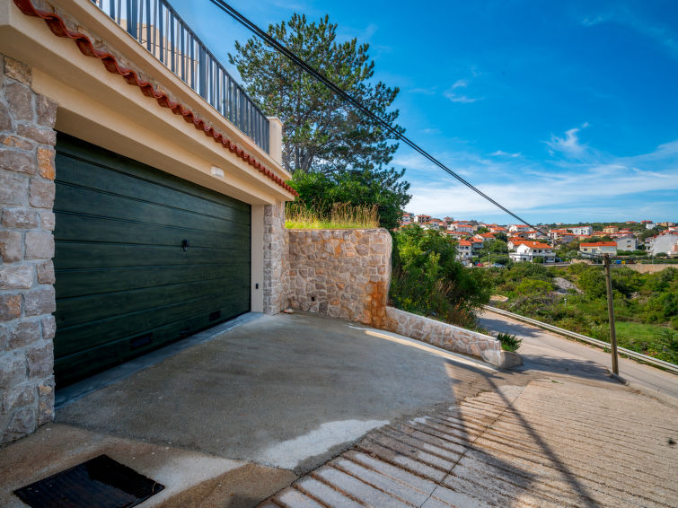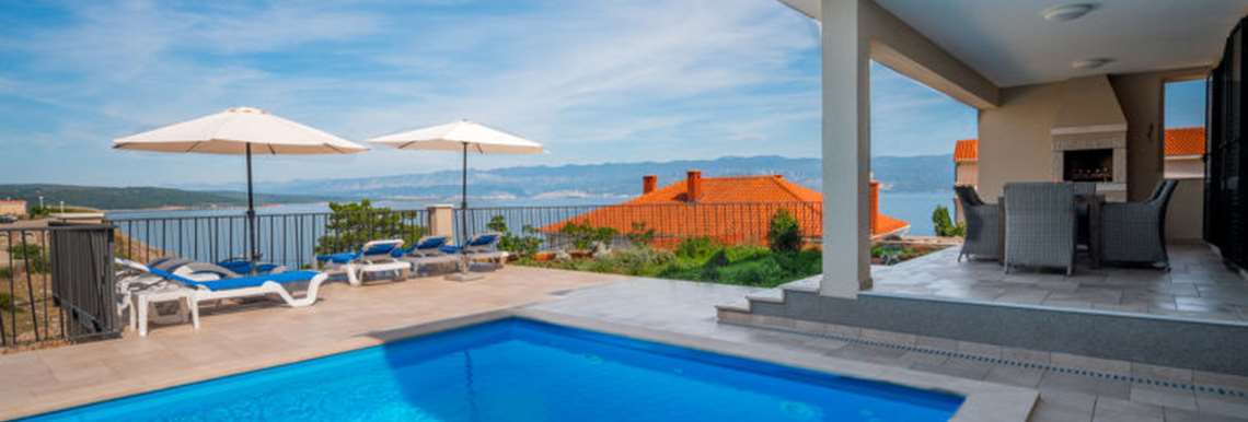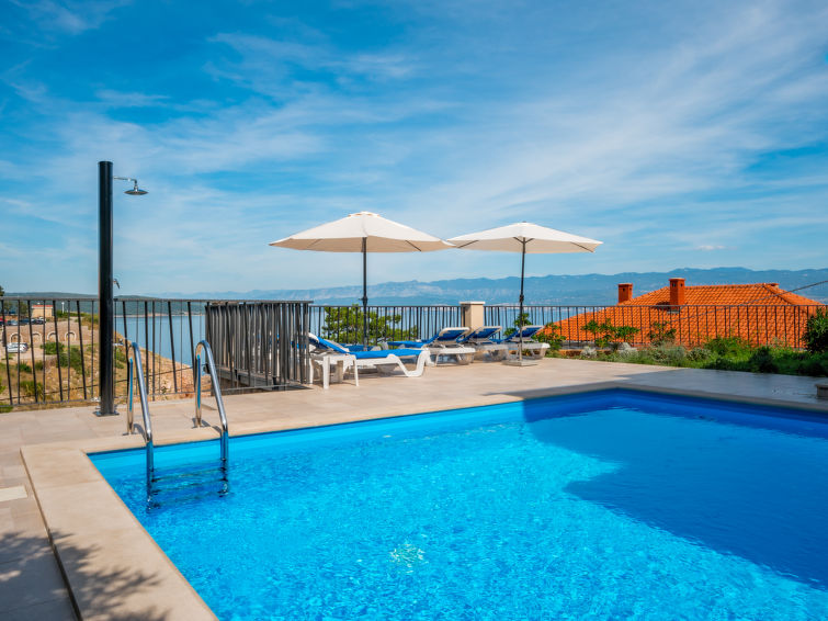 Smuk villa "Vali", på 2 etager, bygget i 2018. 300 m fra bymidten af Vrbnik, solrig, høj beliggenhed, 30 m fra havet, 30 m fra stranden, på en blind vej. Til disposition: grund 520 m2 (indhegnet), pool kantet (5 x 4 m, 23 m2, 140 cm dyb, 11.05.-12.10.) med salt-elektrolyse. Udendørs brus, terrasse (50 m2), grill. I huset: adgang til internet, vaskemaskine. Parkeringsplads ved huset på grunden, single garage (ekstra). Indkøbsforretning 400 m, restaurant 30 m, kiselstenstrand, klippestrand, strand belagt med beton 50 m.
