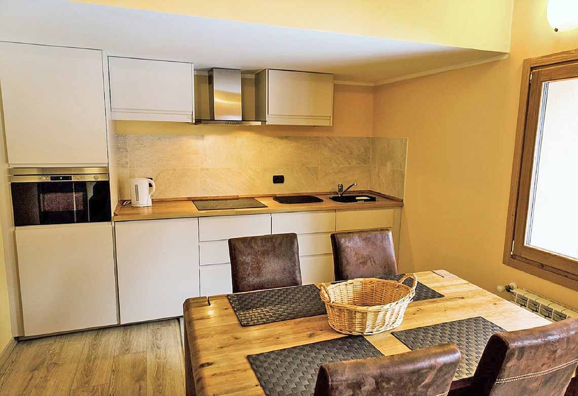 Hvis I hellere vil spise i lejligheden, kan der handles ind i det lokale supermarked. Det er også muligt at bestille friskbagt brød, croissanter og italiensk kaffe, som leveres direkte til lejligheden. Chalet Alpina har et samarbejde med en lokal gourmet butik i landsbyen, som leverer en række færdige delikate italienske retter, som kan bestilles hjem til lejligheden. Bestilling af morgenmad og italienske retter med levering til lejligheden bestilles hos Chalet Alpina.