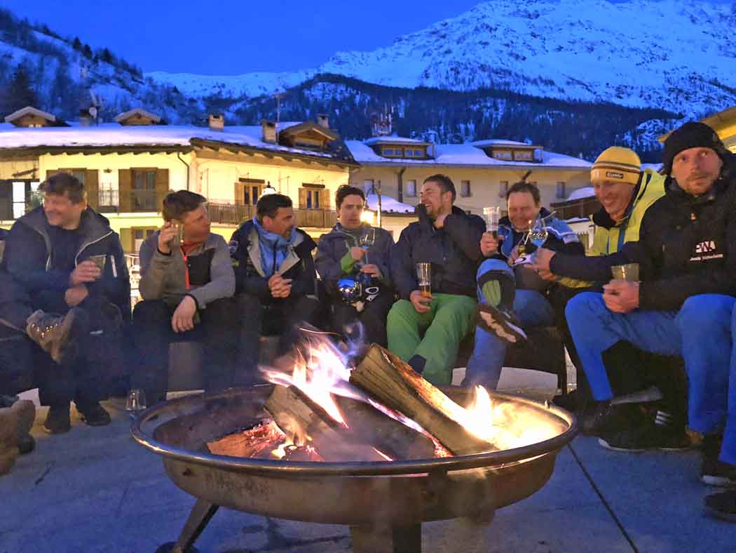 Receptionen og lobbyen er hyggeligt indrettet og i bedste chalet-stil. Her får du virkelig den autentiske alpefølelse at mærke. Der er en meget hyggelig solterrasse hvor der hver dag bliver tændt op i et smukt bålfad. Solterrassen ligger i umiddelbart tilknytning til hotelles lyse og stemningsfyldte bar som tilbyder lækre cocktails eller bare en kold øl, efter en dag på pisten eller som hygge efter middagen.