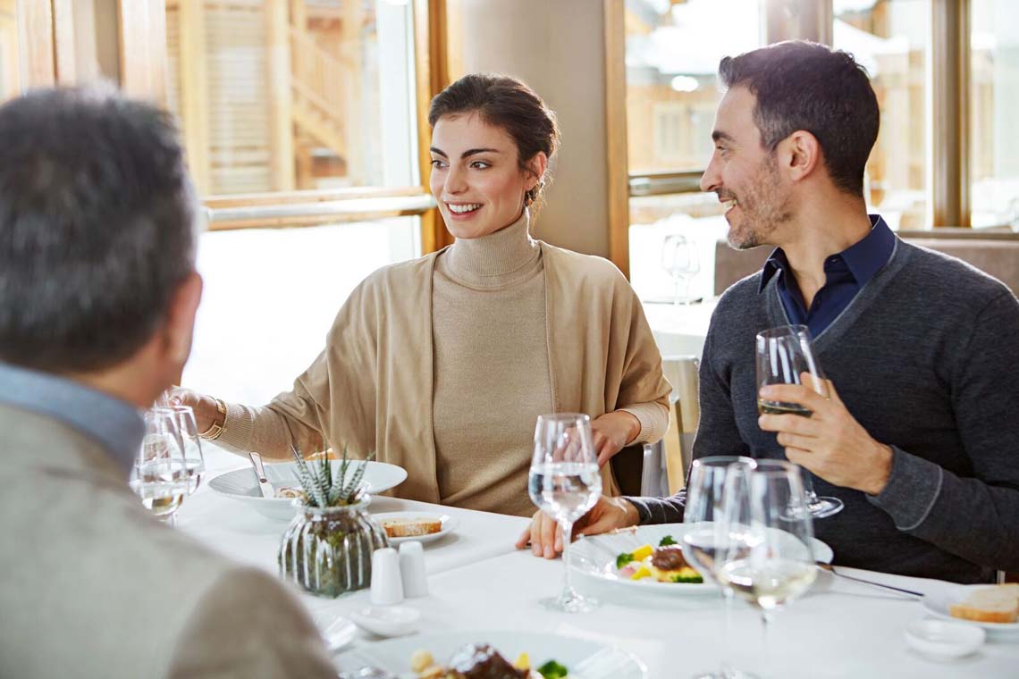 Når I bor i chaletlejlighederne, får I skøn stor morgenbuffet på hotellet og kan selv vælge at lave mad i chalettet eller spise på hotellet.