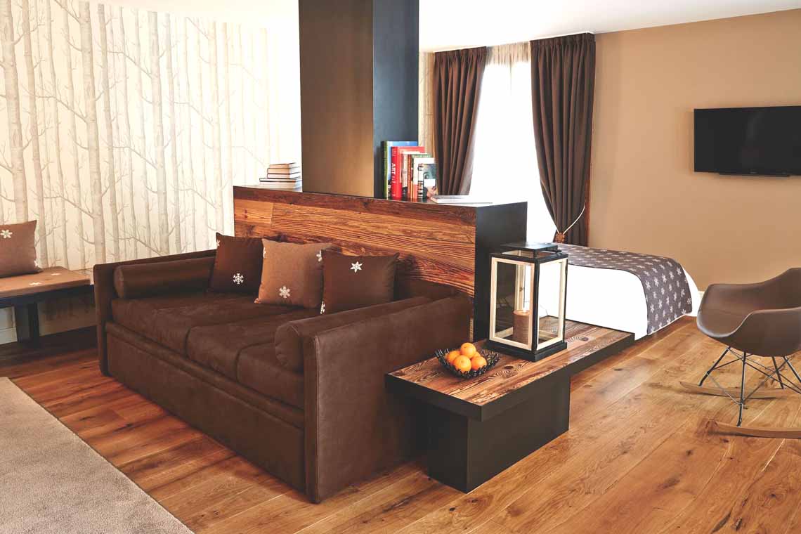 I kan få jeres helt egen private chaletlejlighed med 5-stjernet hotelservice. Chaletlejlighederne varierer i størrelse og indretning. Alle er luksuriøse og nogle er i 2 etager med flere soveværelser, to badeværelser, en hyggelig stue samt køkken.