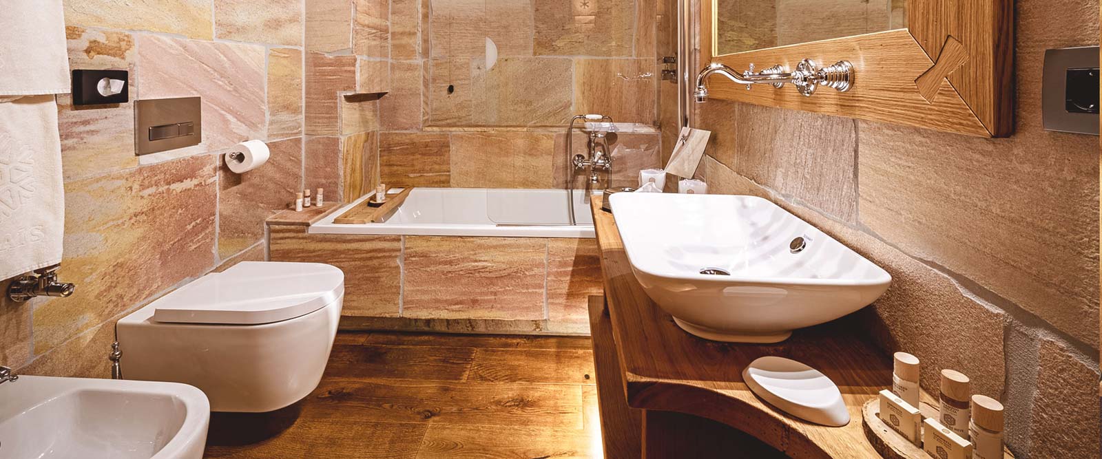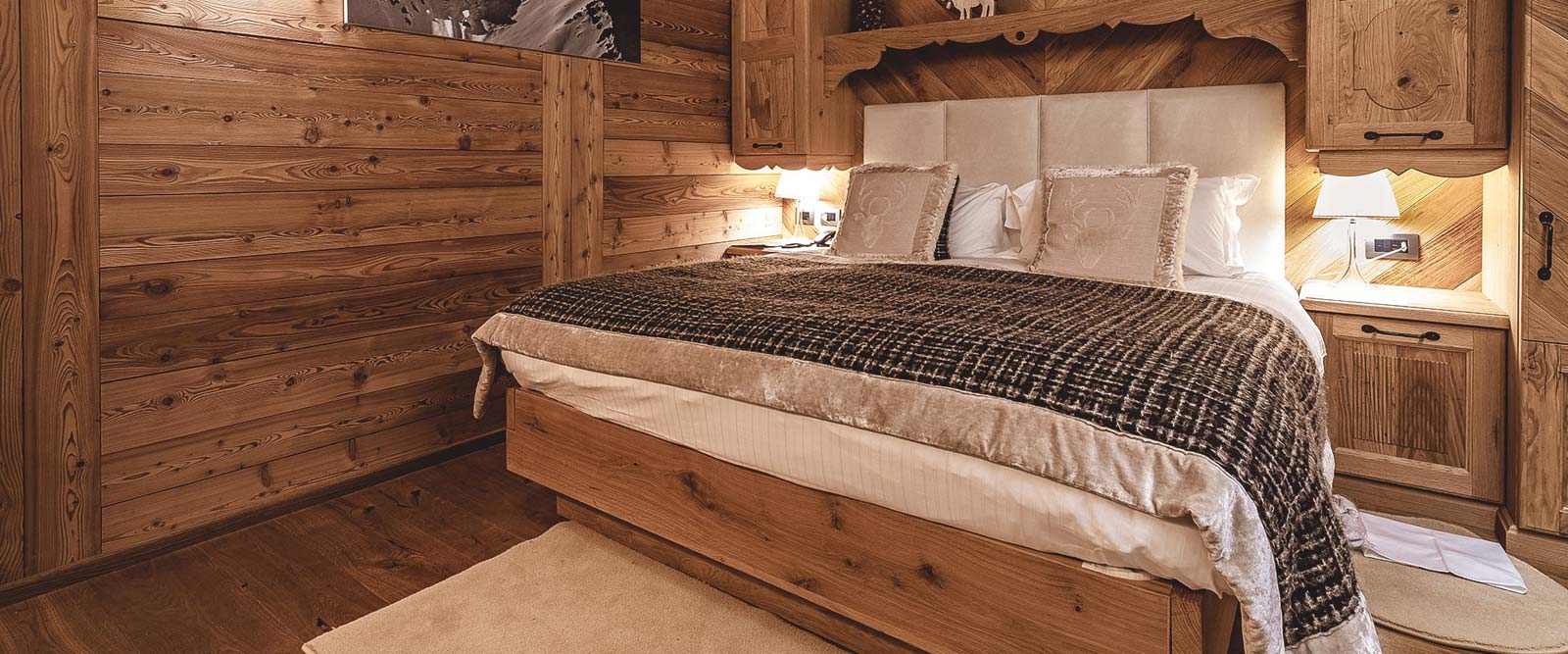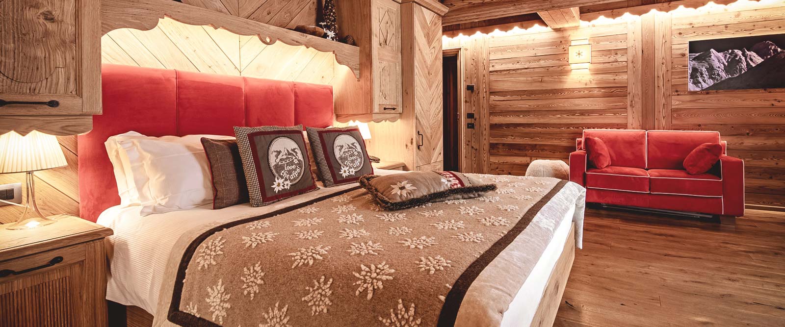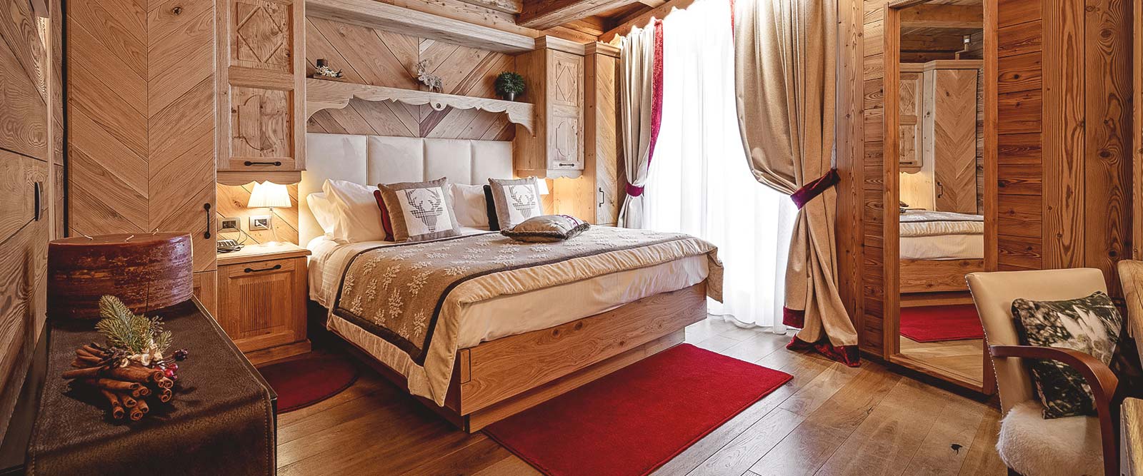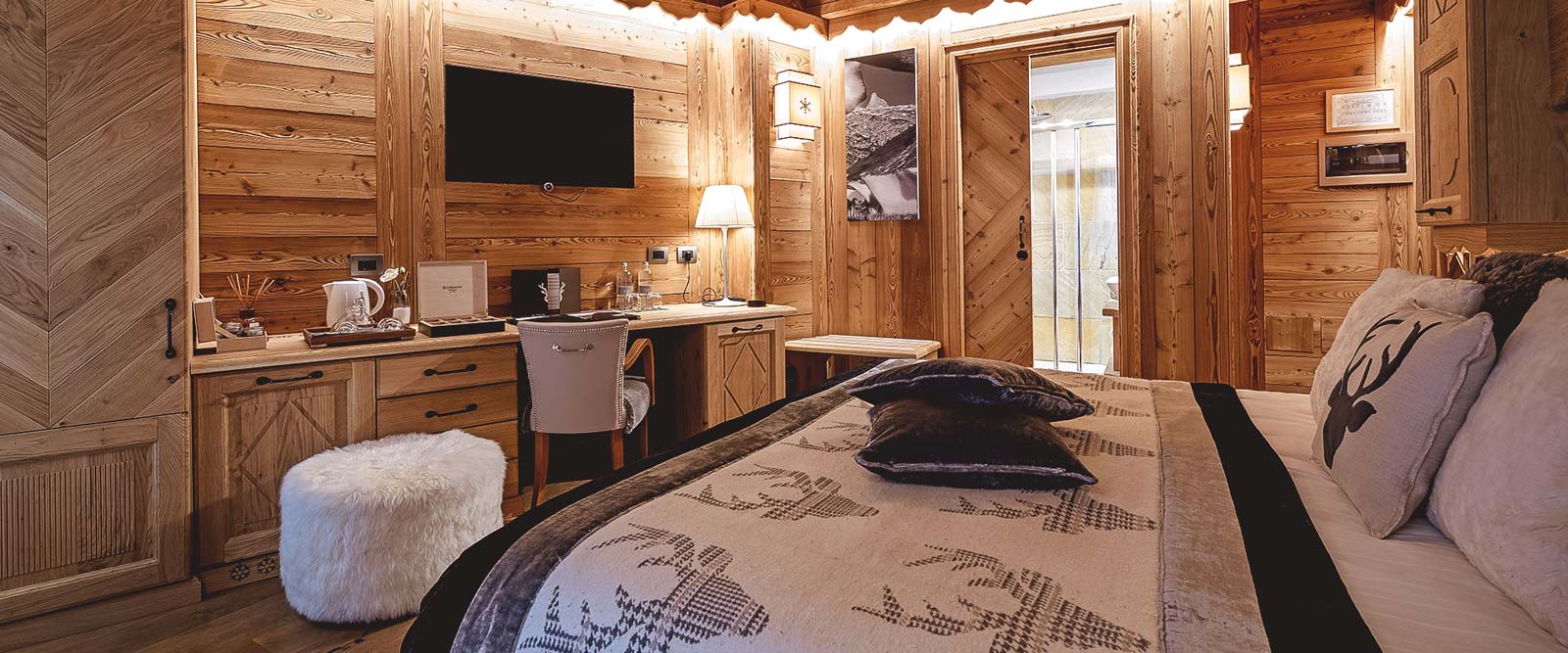 Værelserne er moderne indrettet i chalet-stil, med omgivelser i træ og sten, der giver en autentisk og luksuriøs alpestemning. Alle værelser har TV med internationale kanaler og Netflix, gratis trådløst internet, tekande og minibar, samt wellness-pakke med badekåbe, håndklæde, og luksusprodukter til badet. Nogle værelser har også kaffemaskine.