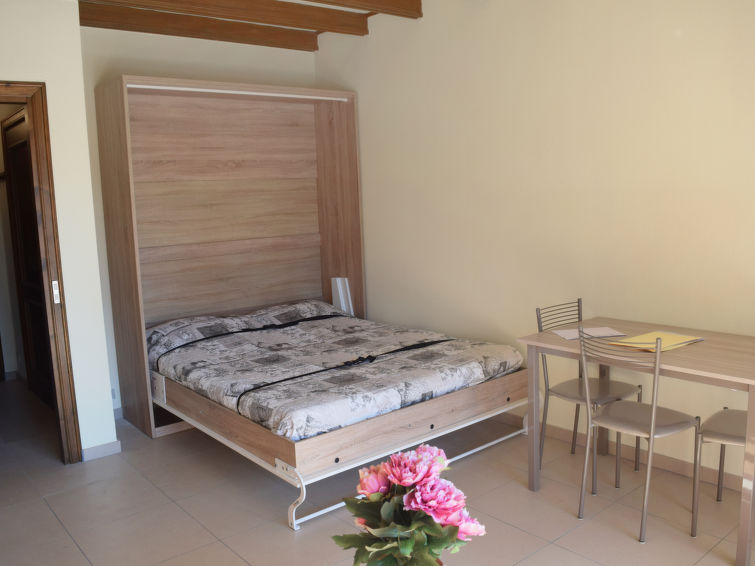 1-værelse- lejlighed 39 m2 til 3 personer. Indrettet med stue/spisestue med 1 dobbelt sovesofa, 1 vægklapseng og sat-TV. Udgang til havesideplads. Kogeniche (4 kogeplader, mikroovn). Bad/bidet/WC. Opvarmning (ekstra betaling) kun tilgængelig fra 15.10. til 15.04. Havesiddeplads overdækket, lille have 20 m2. Havemøbler. Parkeringsplads. Bemærk venligst: ikke-ryger lejlighed.