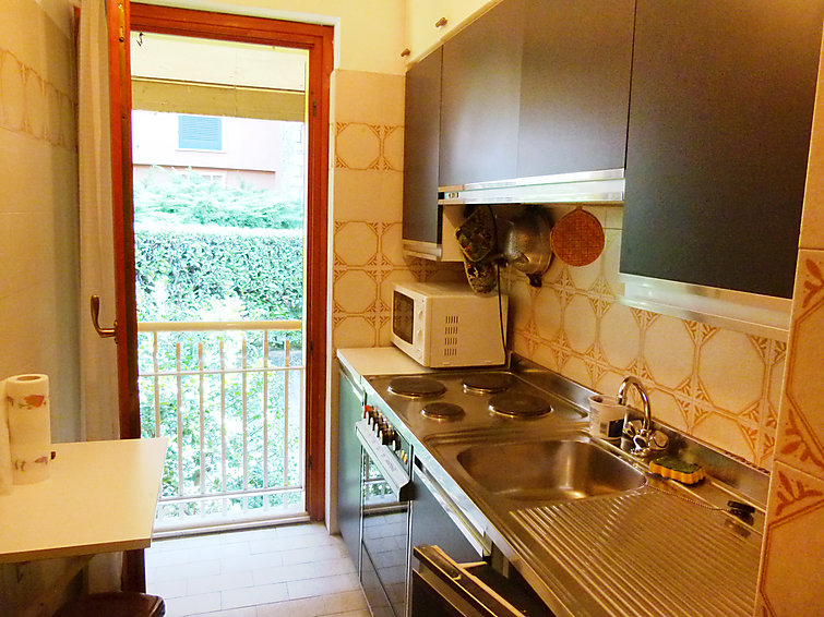 3-værelse-lejlighed 80 m2 til 5 personer. Enkelt indrettet med stue/spisestue med 1 sovesofa (160 cm), sat-TV. Udgang til altan. 1 dobbeltværelse. 1 værelse med 2 senge. Lille køkken (4 kogeplader, ovn, elektrisk kaffemaskine). Bad/bidet/WC. Lille have. Havemøbler. Til benyttelse: vaskemaskine, højstol. Internet (trådløs LAN [WLAN], gratis). Parkeringsplads. Velegnet for familier.