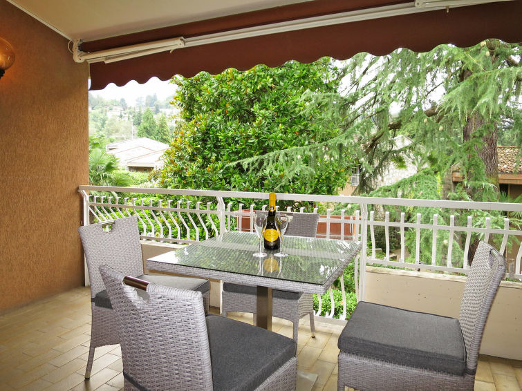 2-værelse-lejlighed 50 m2 til 3 personer. Fuldstændig renoveret i år 2018, komfortabelt og moderne indrettet med stue/spisestue med 1 dobbelt sovesofa, sat-TV og elektriske jalousier. Udgang til terrasse. 1 værelse med 1 seng og TV. Kogeniche (ovn, opvaskemaskine, 4 Induktionskomfur, fryser, elektrisk kaffemaskine). Brus/bidet/WC. Opvarmning (ekstra betaling) kun tilgængelig fra 15.10. til 15.04. Parketgulve. Terrasse 8 m2, overdækket. Havemøbler. Udsigt over søen og have. Til benyttelse: vaskemaskine, pengeskab. Parkeringsplads.
