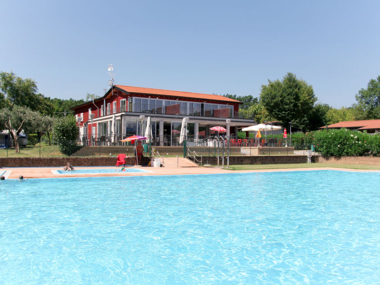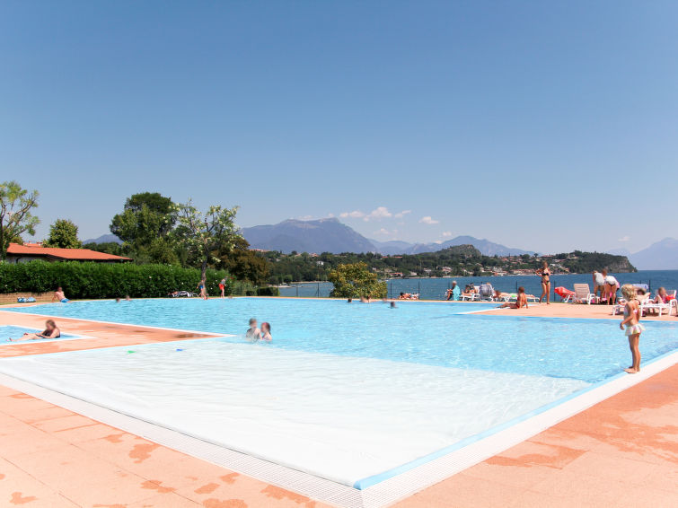 "San Giorgio Vacanze" har 68 lejligheder og et dejligt poolområde beliggende direkte ved Gardasøen. I nærområdet ligger andre ferieområder og campingpladser mens der er ca. 2 km til bymidten af Moniga del Garda, 5 km fra centrum til Manerba, 40 km til bymidten af Brescia. Til ejendommen hører: grund 32'000 m2, græsplæne og træer, pool (31 x 15 m, 01.01.-31.12.). Toilet i pool området, børnepool, udendørs brus, tennis (ekstra), petanque, volleyball, legeplads. I anlægget: reception, restaurant, bar, trådløs LAN [WLAN], bordtennis, indkøbsmulighed, vaskemaskine (ekstra), tørretumbler (til medbenyttelse, ekstra). Rundstykkeservice. Parkeringsplads på grunden. Indkøbsforretning 2 km. Golfbane (27 hul) 6 km.