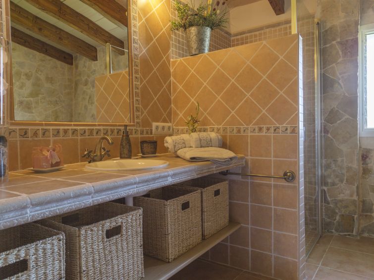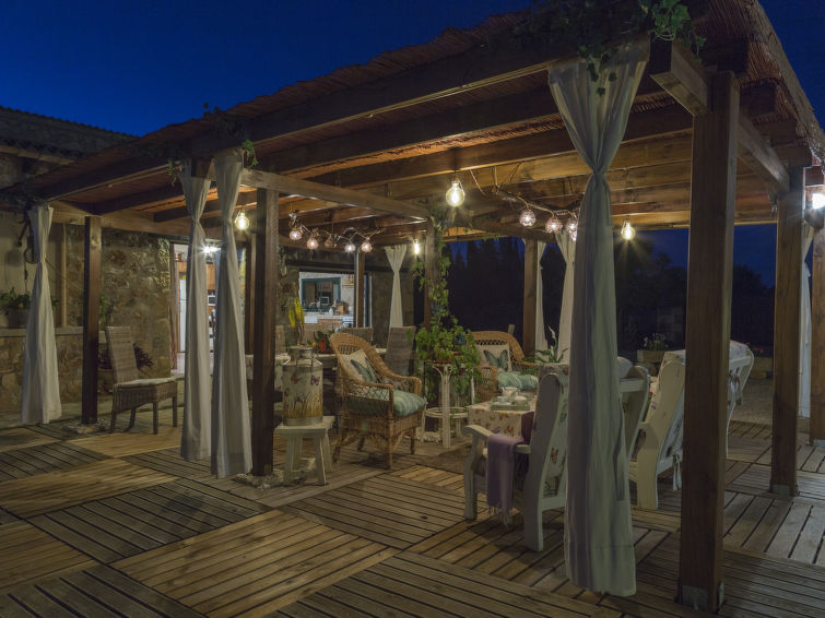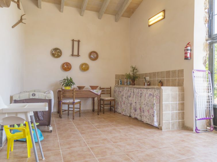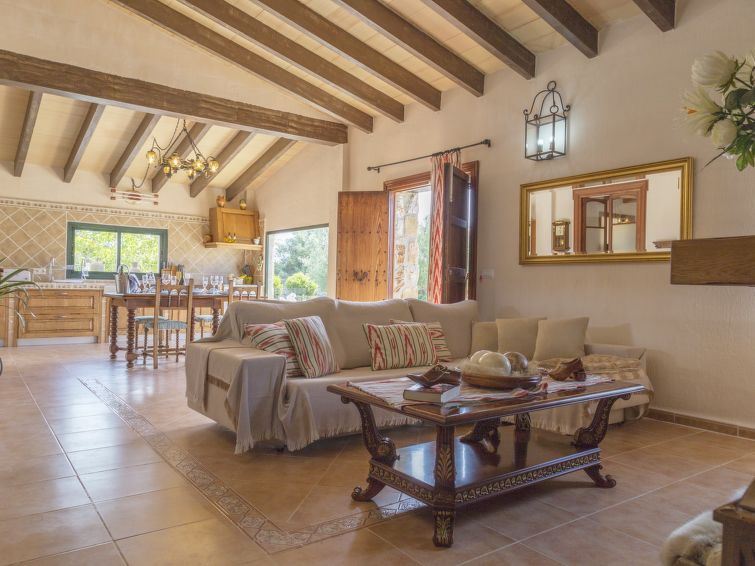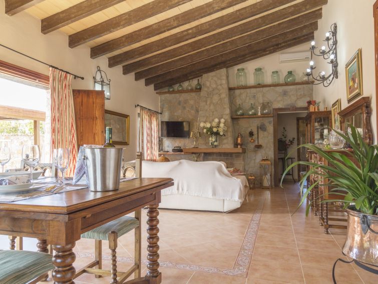 ****Finca Els Pins er velegnet til familier og passende til ældre. Feriehuset er på 180 m2 og har plads til 8 voksne. Indretningen er pæn og komfortabel med lyse og rummelige værelser. ****Finca Els Pinns består af køkken, stue, 4 soveværelser og 2 badeværelser. Køkkenet er veludstyret med diverse køkkenredskaber, ovn, opvaskemaskine, 4 keramiske kogeplader, mikrobølgeovn, køleskab, fryser og elektrisk kaffemaskine. Det åbne køkken alrum forbinder køkken, spisestue og stuen. I spisestuen er der en hyggelig spiseplads ved panoramavinduet, og stuen byder på hygge og afslapning i sofaen foran fladskærms-TV’en. Stuen har DVD-afspiller, klimaanlæg og varmlufts opvarmning samt udgang til terrassen og haven. 3 af soveværelserne har dobbeltseng (150 x 200 cm) med ventilator. Det fjerde soveværelse har to enkeltsenge (90 x 190 cm) og ventilator. De to badeværelser har toilet og brusekabine. Der er flot panoramaudsigt over bjergene og landskabet. Bemærk, at kæledyr ikke er tilladt.
