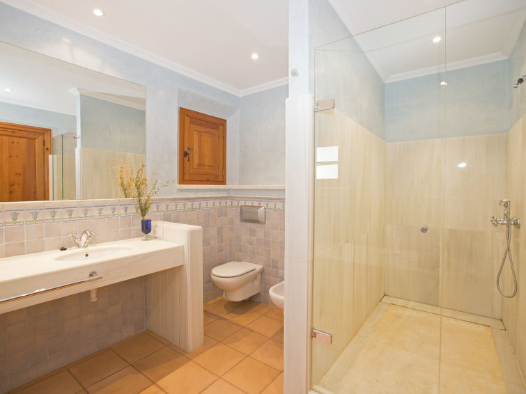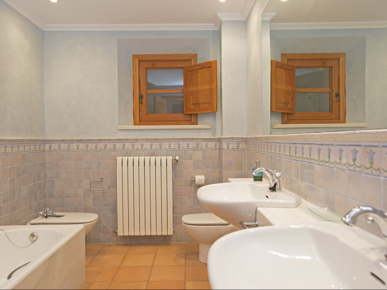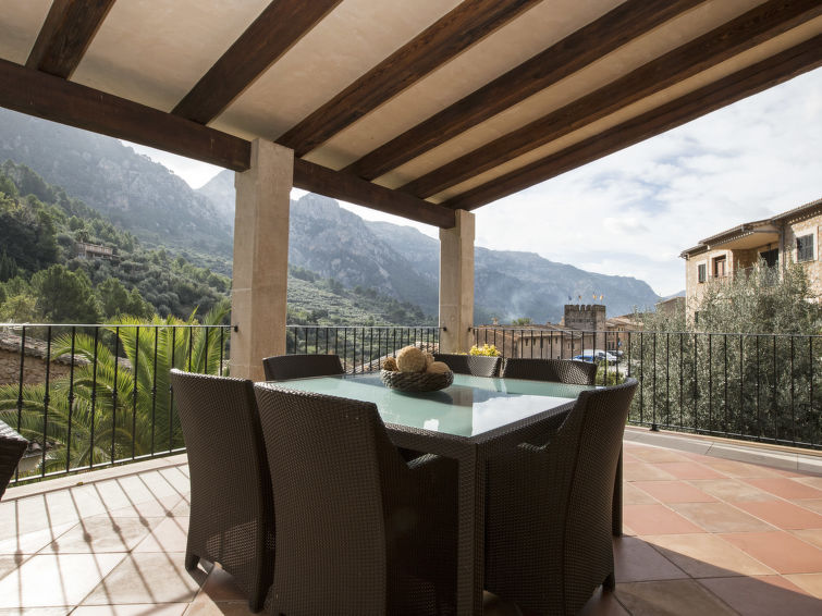 Luksuriøs 6-værelses villa på 400 m2 som er på 3 etager og med plads til 8 personer. Villaen er omgivet af marker med udsigt til det flotte bjerglandskab og har en højbeliggenhed i byen Fornalutx, i et roligt område med 1 km til skoven og 7 km til sandstrand. Villaen har en smuk velplejet have med terrasse, lysthus, pergola, grill og havemøbler. Der er en stor opvarmet pool som er op til 150 cm dyb.