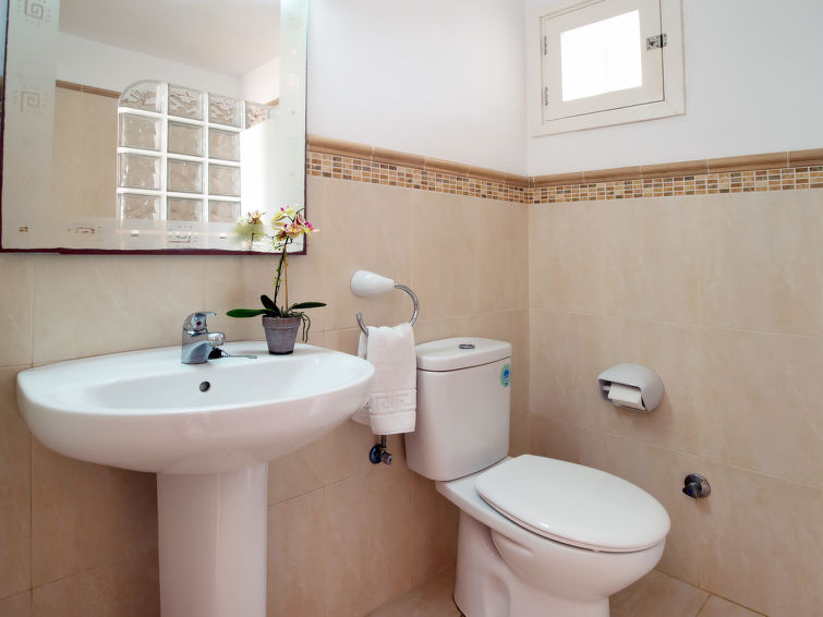 De 3-værelses lejligheder er funktionelt med køkken, stue/spisestue, to soveværelser og et badeværelse. Størrelsen er ca. 75 m2 og der er plads til 4 personer. Det åbne køkken er småt, men velindrettet med de mest almindelige køkkenredskaber, keramiske kogeplader eller gasblus, køleskab, fryser, brødrister, vandkoger, ovn og kaffemaskine. Spisestuen har spisebord og stole. Stuen har TV og udgang til altan med havemøbler og udsigt over havet. Badeværelset har toilet og brusekabine. Begge soveværelser har to enkeltsenge, der kan slås sammen til en dobbeltseng. Det er muligt at benytte vaskemaskine, højstol og barneseng.