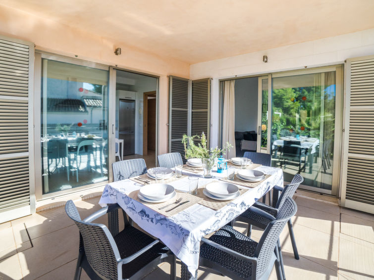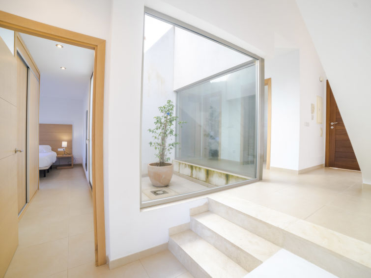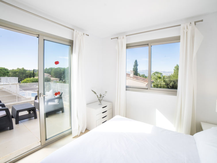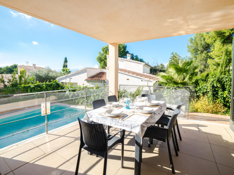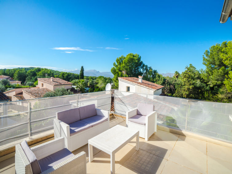I byen Bonaire, 2 km fra Alcúdia og tæt på havet ligger denne moderne villa på 200 m2 med plads til 8 personer. Villaen er på 2 etager har en utrolig flot udsigt til bjergene, byen og landskabet og omgivet af flotte træer samt en have. Villaen har swimmingpool med mulighed for opvarmning, udendørs bruser, terrasse, altan, grill og havemøbler. Der er wifi, vaskemaskine, strygejern, hårtørre, aircondition, cykelrum og indhegnet parkeringsplads.