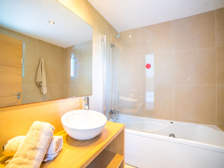Villaen har fire badeværelser, to med brusekabine og wc, og to med badekar, bruser og wc.