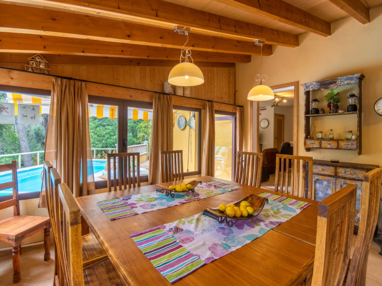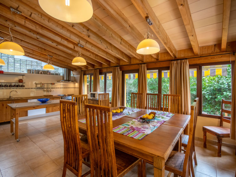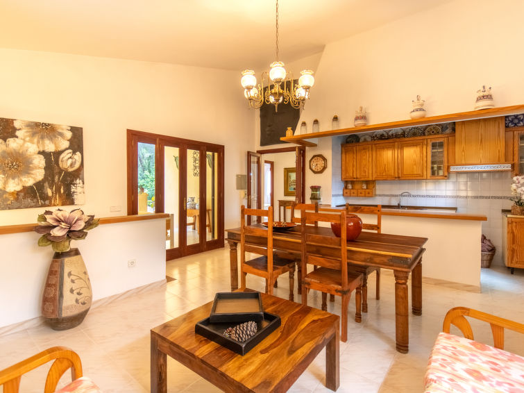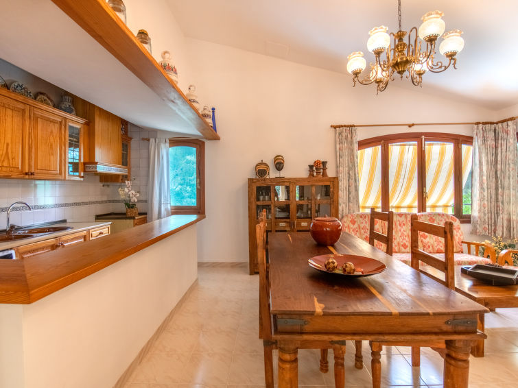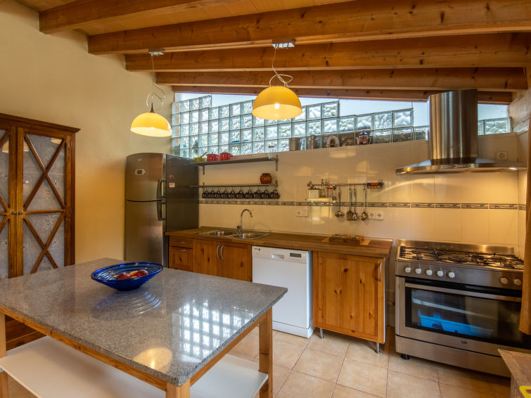 Der er et stort køkken alrum som har alt du skal bruge: 5 kogeplader, opvaskemaskine, mikroovn, fryser, kogeø samt køkkenet udstyr til madlavning. Hertil er der et stort spisebord som kan justeres efter hvor mange man er. Der er udgang til udendørsspisested og poolen igennem køkkenet.