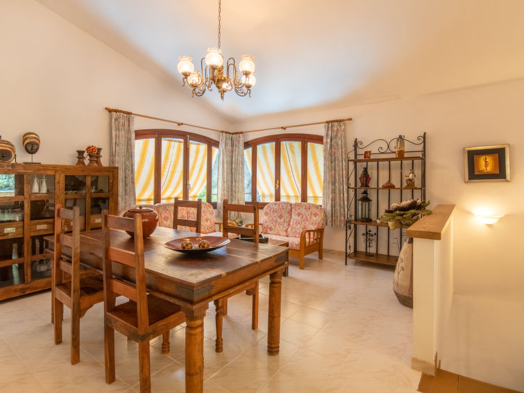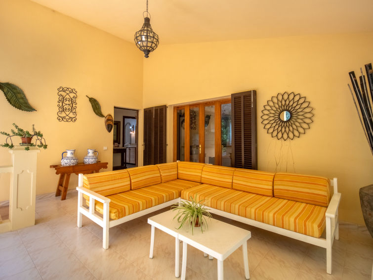Villaen er indrettet med rustikke og behagelige møbler der skaber en god stemning. Stuen ligger med udsigt til haven, og med direkte udgang til poolen. Den er indrettet med sofaer, sofastole samt et fladskærms TV.