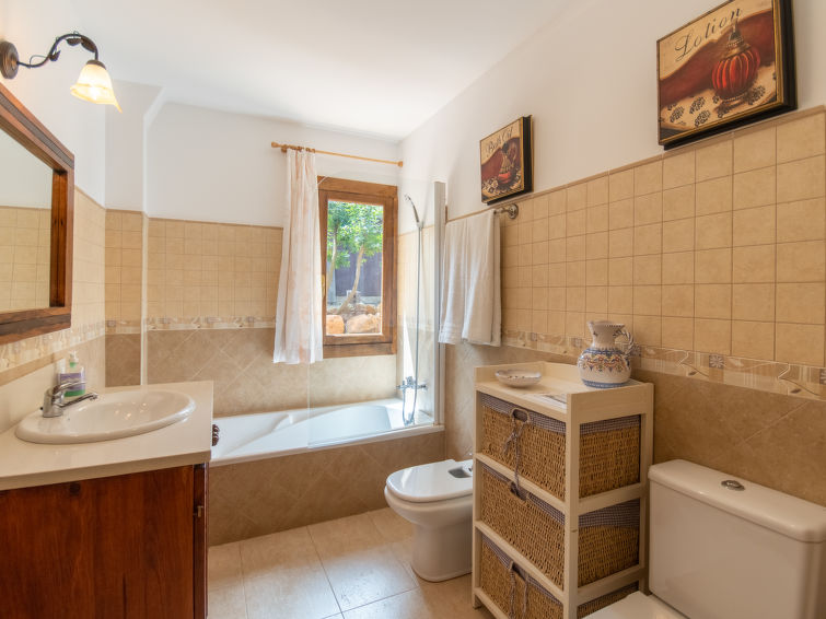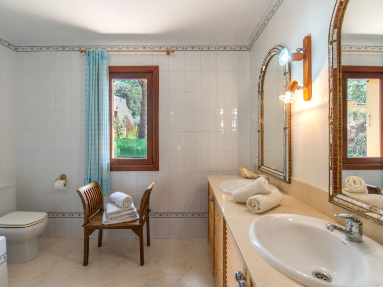 Villaen har i alt tre badeværelser: to store og et mindre - alle med wc og bruser hvor et af dem også har badekar.